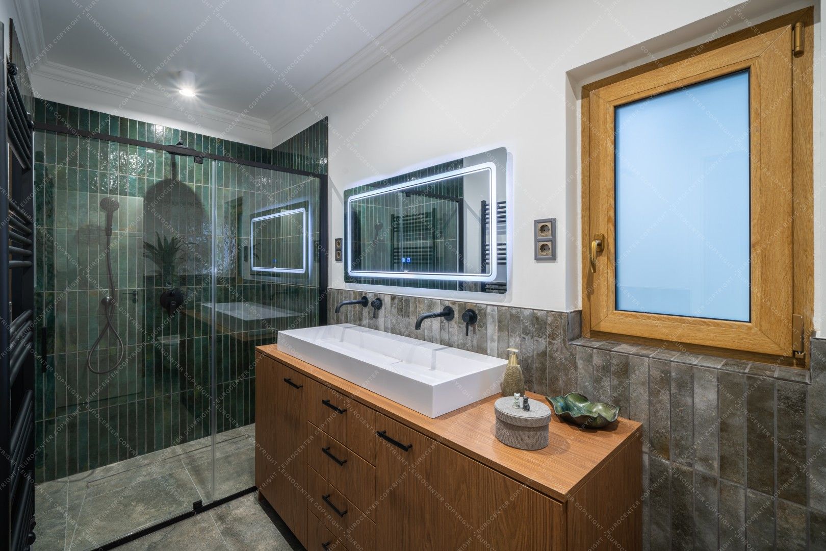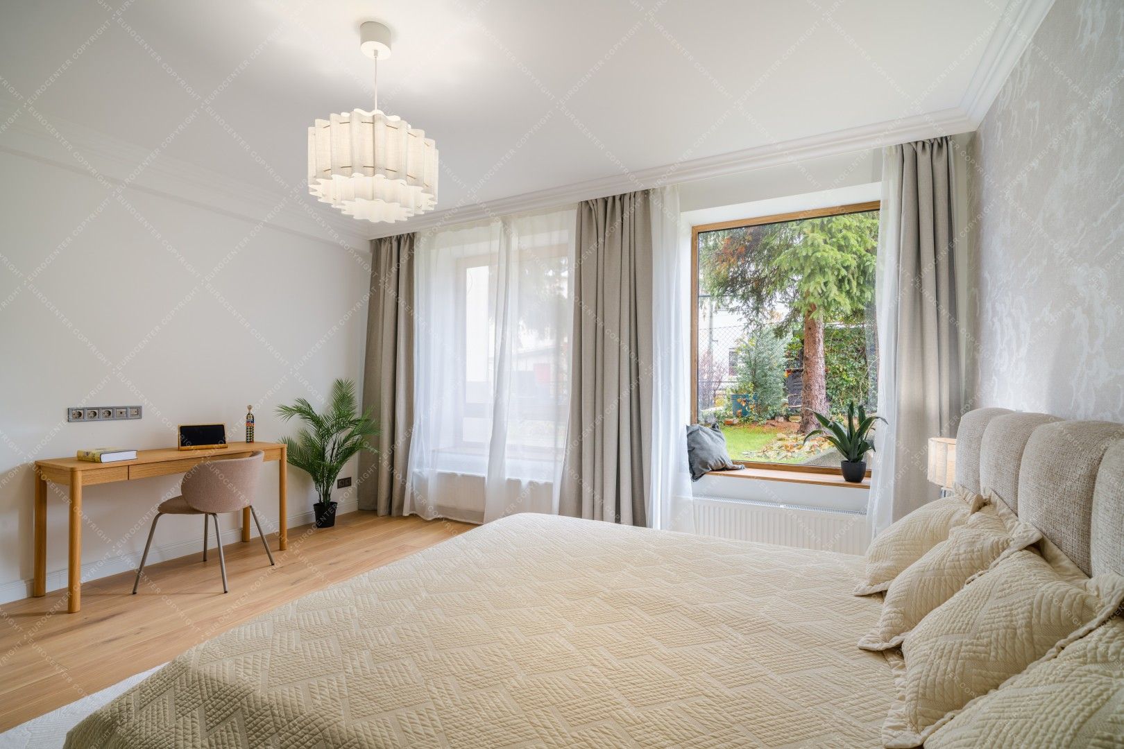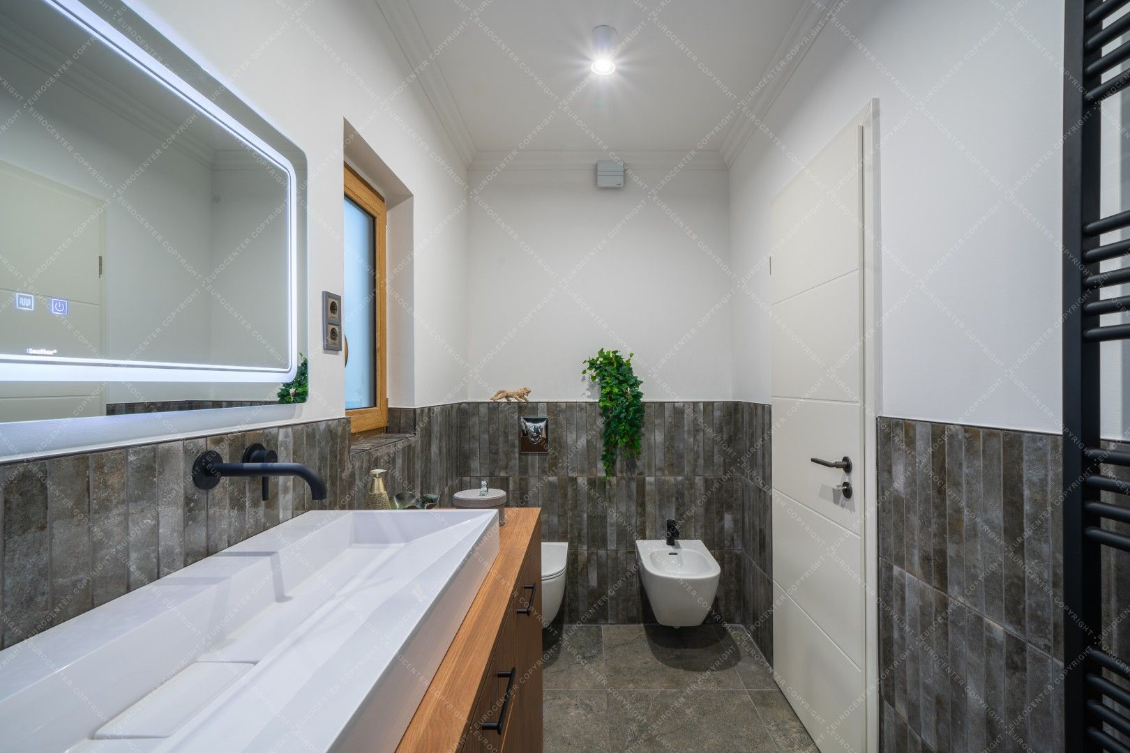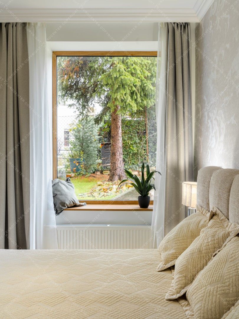 The family gathering area has underfloor heating, while the rooms are heated by radiators, all powered by a gas boiler located in a separate room. Each room has its own air conditioning. Heat, light and sound insulation are provided by state-of-the-art triple-glazed windows and electric shutters. The garden is well-kept and green, and the surrounding courtyards are also wooded. Parking is free. Shopping centers, shops, restaurants, markets and local government offices are all within walking distance.