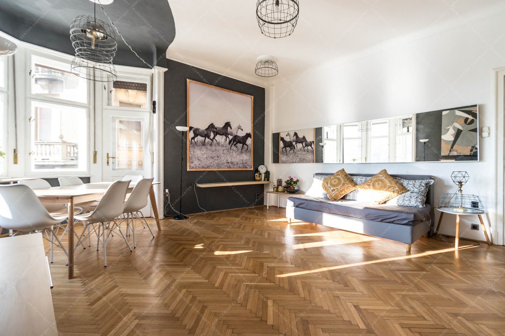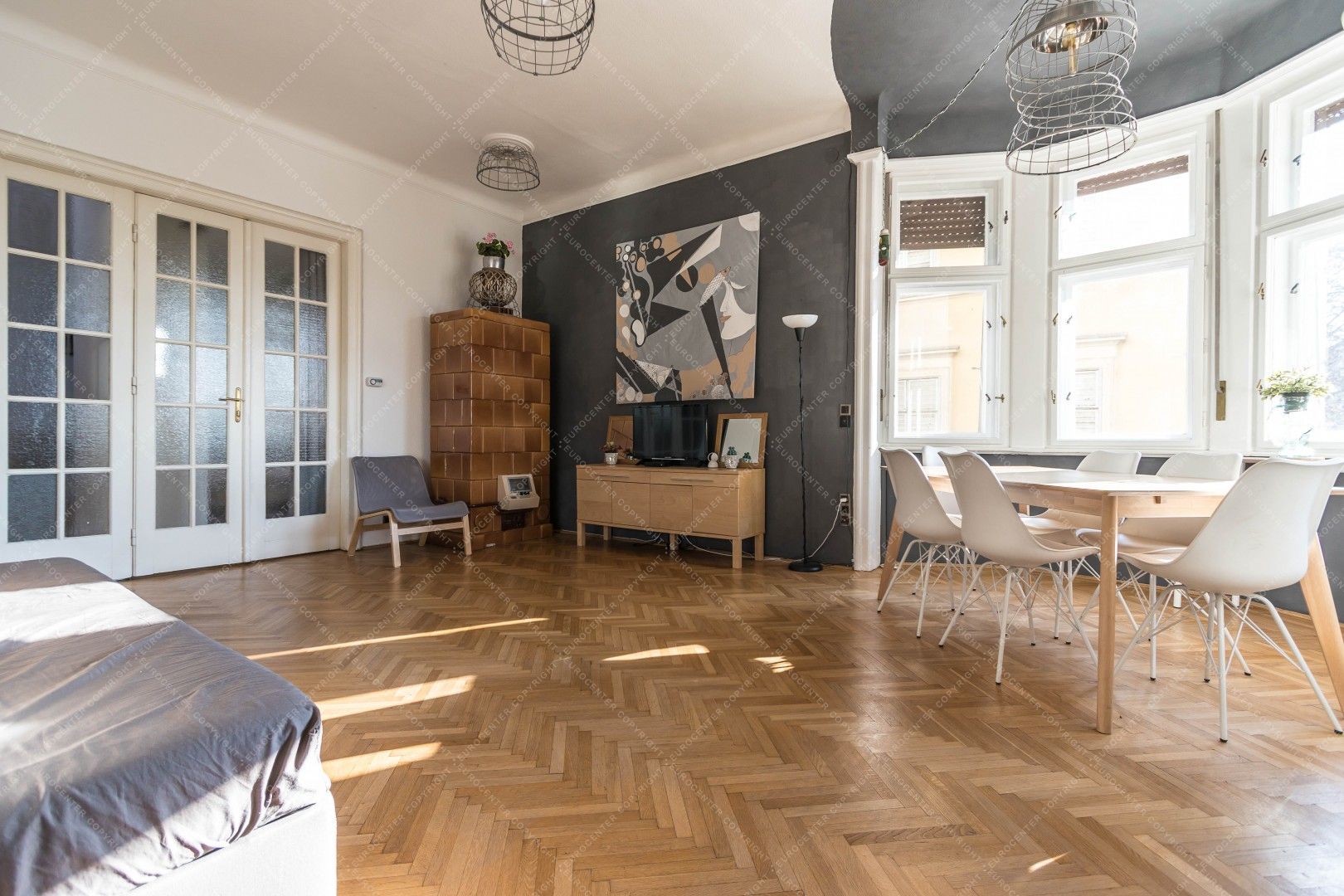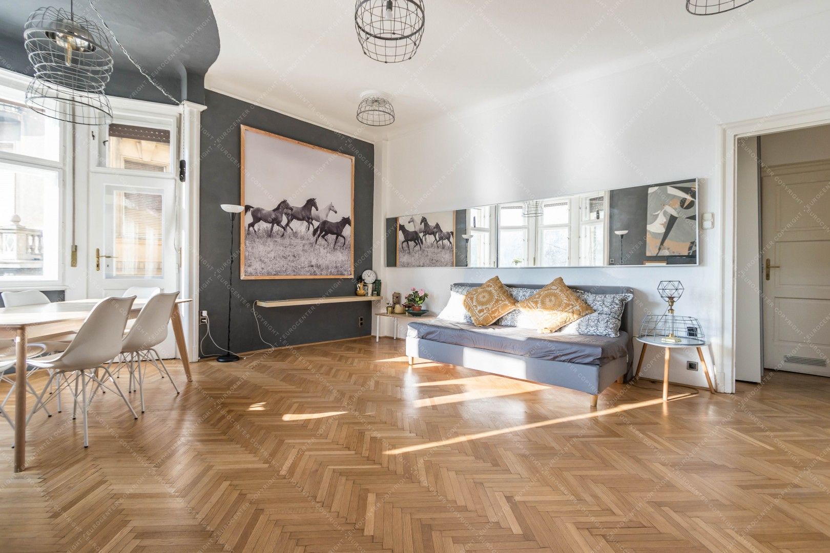 Thanks to its windows and location, the apartment is exceptionally bright. The neighbourhood is ideal in every respect: the Danube promenade, Fővám Square, the Great Market Hall, as well as numerous restaurants, cafés, and public transport options are all just a few minutes’ walk away.