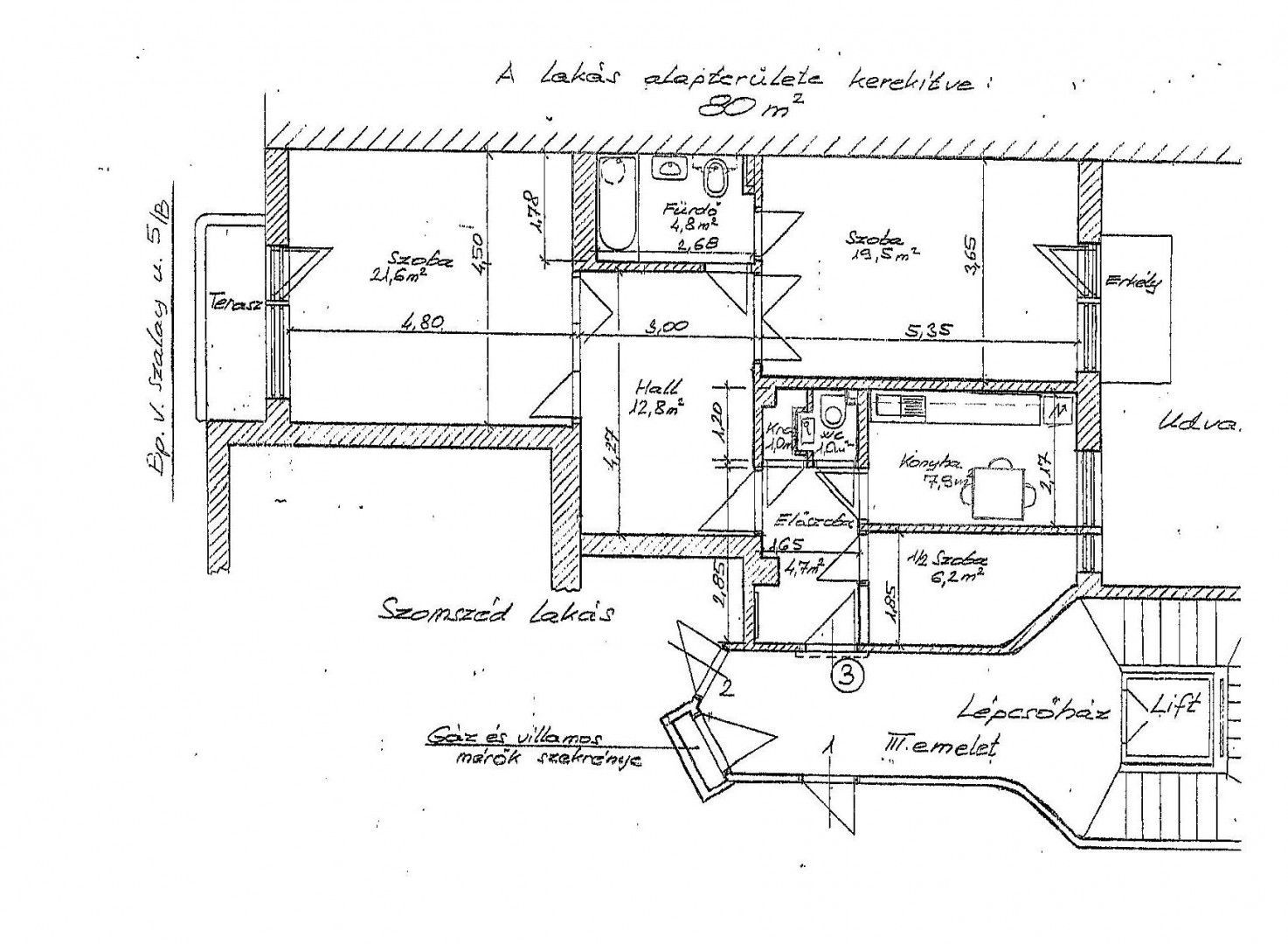 In Budapest’s prestigious 5th district, just steps from the Parliament and Kossuth Square, a 78 m² Bauhaus-style apartment (built around the 1930s) is for sale on Szalay Street, featuring two balconies of 2 m² each.