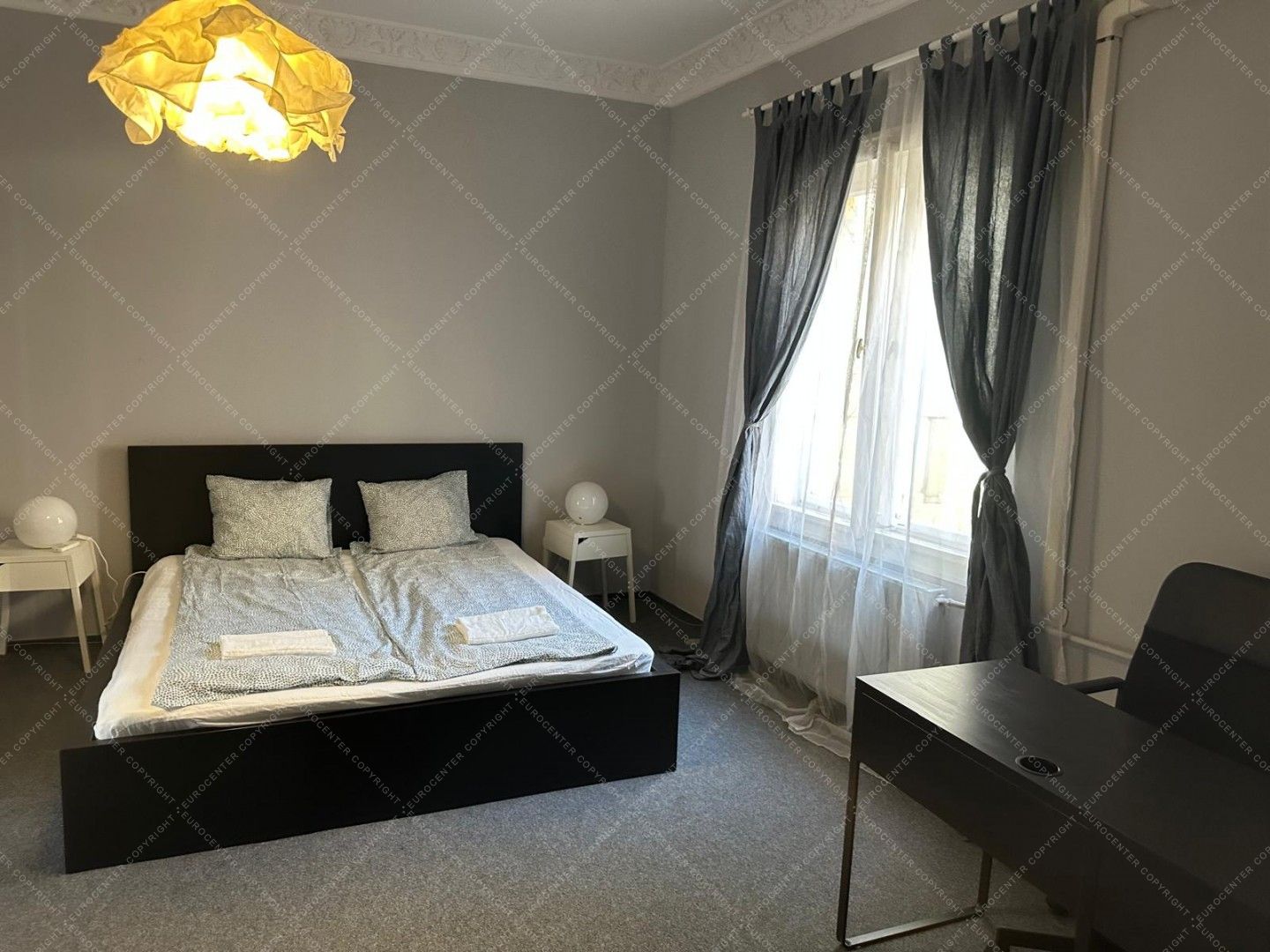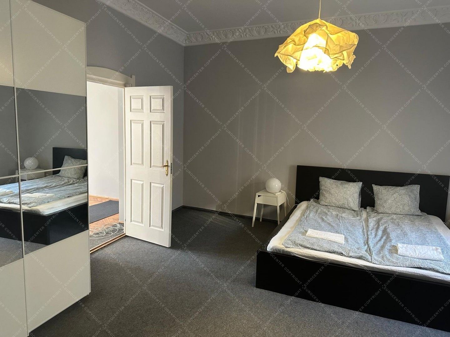 The apartment is located on the 3rd floor of a classical building that has no elevator. The outer facade of the building is recently renovated, the inner facade is in good shape as well, the apartment was renovated about 10 years ago. It has 3 spacious rooms towards the street, a living room opened together with a spacious kitchen on a total of 67 sqm, plus a 23 sqm bedroom, which has a small walk in wardrobe and a bathroom connected. additionally there is a 25 sqm bedroom opening from the living room, with its own bathroom, and a 16 sqm bedroom and a 7 sqm room with one more bathroom in the apartment.