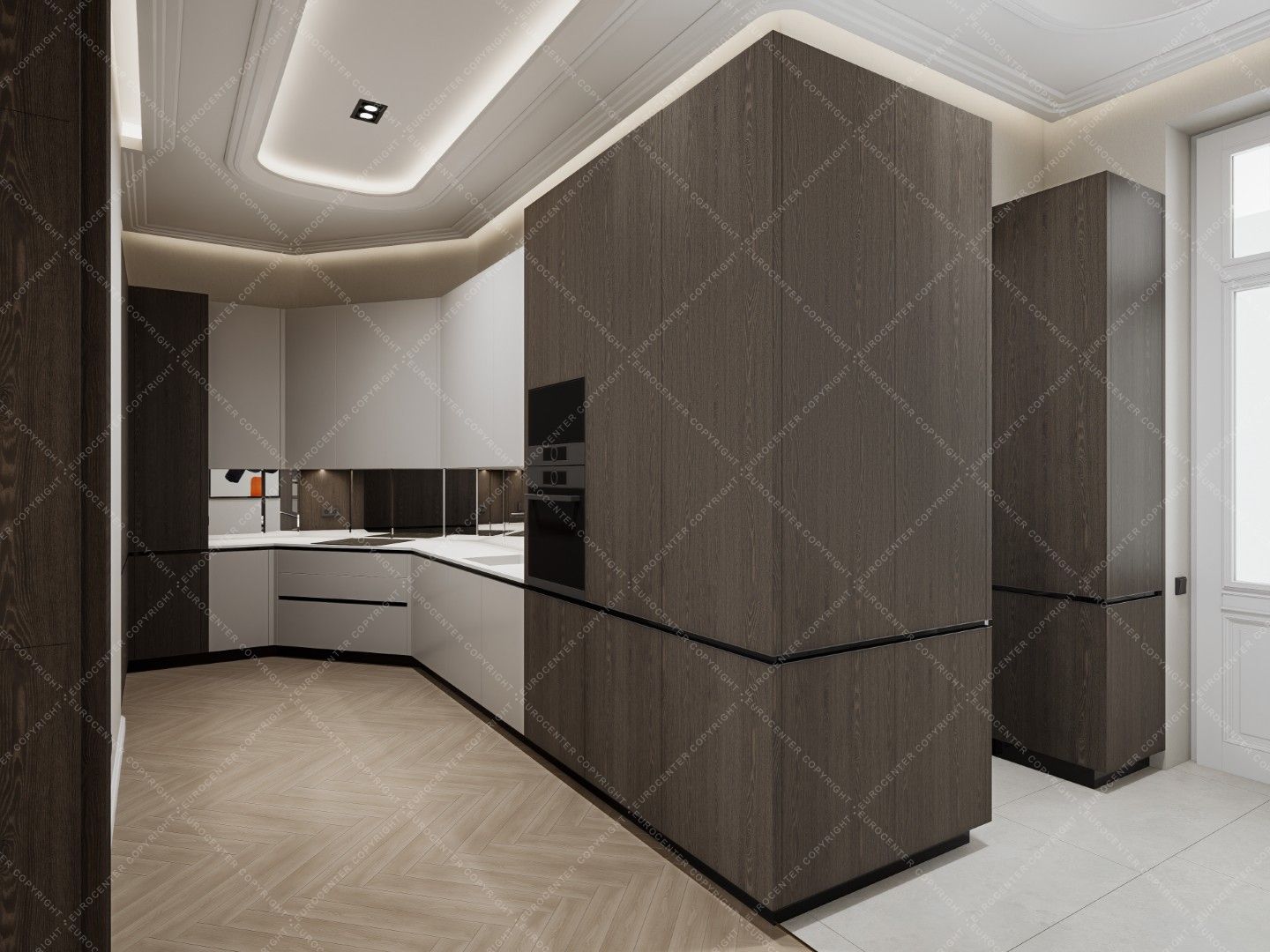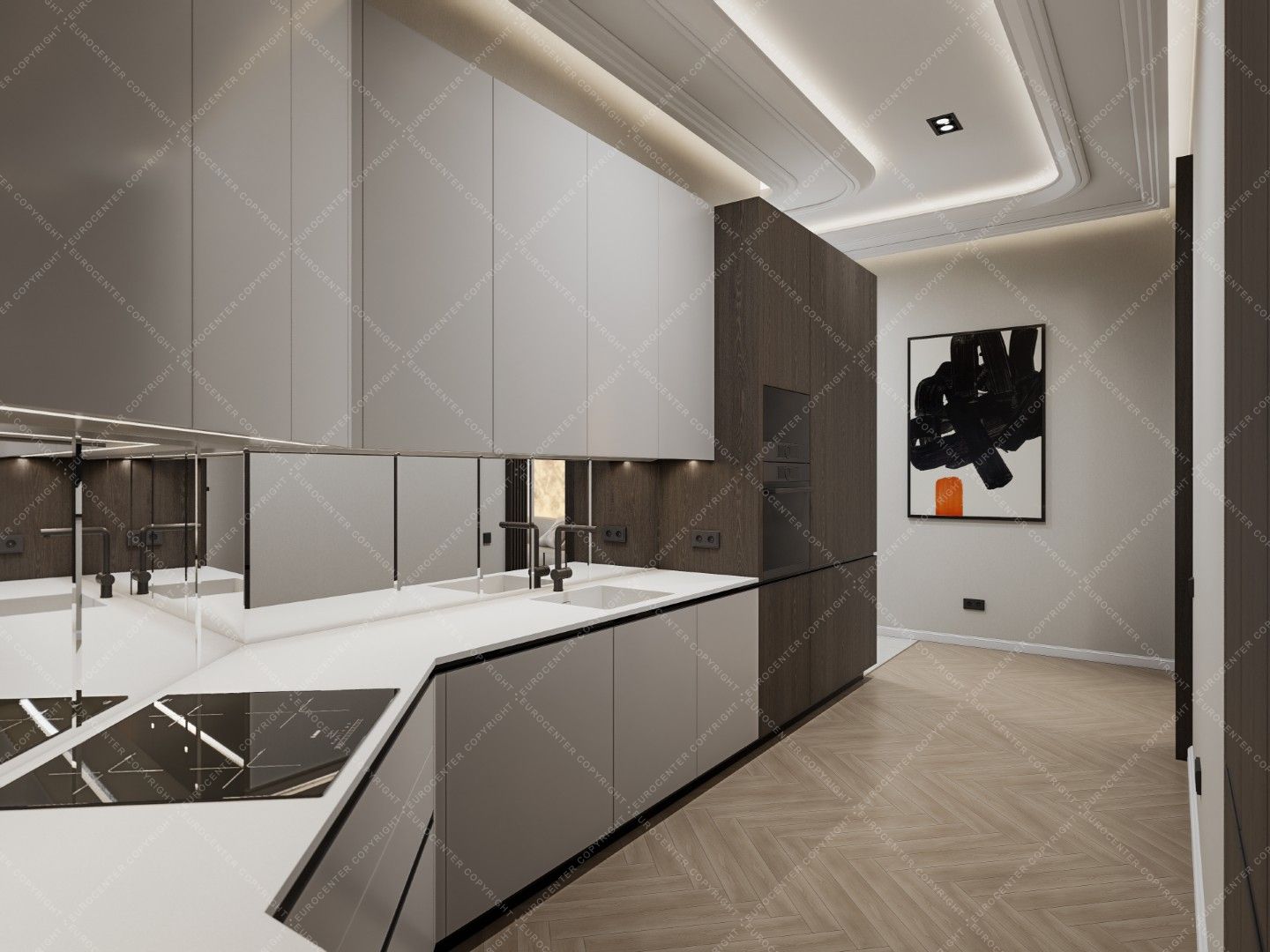 The apartment is completely fitted with exclusive pieces of furniture designed and manufactured individually, given a lot of emphasis, with plaster stucco decorations and hidden lights throughout the entire property. The kitchen is fitted with quality kitchen furniture, a beautiful white silestone worktop, with a bar that can be illuminated with hidden lights. The beds in the bedrooms have individually designed upholstery headboards, behind which plaster stucco and LED lighting make them as cozy as possible.