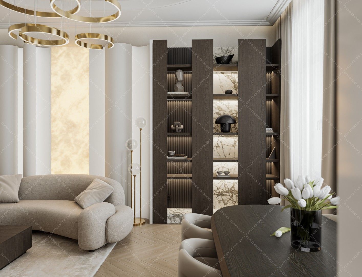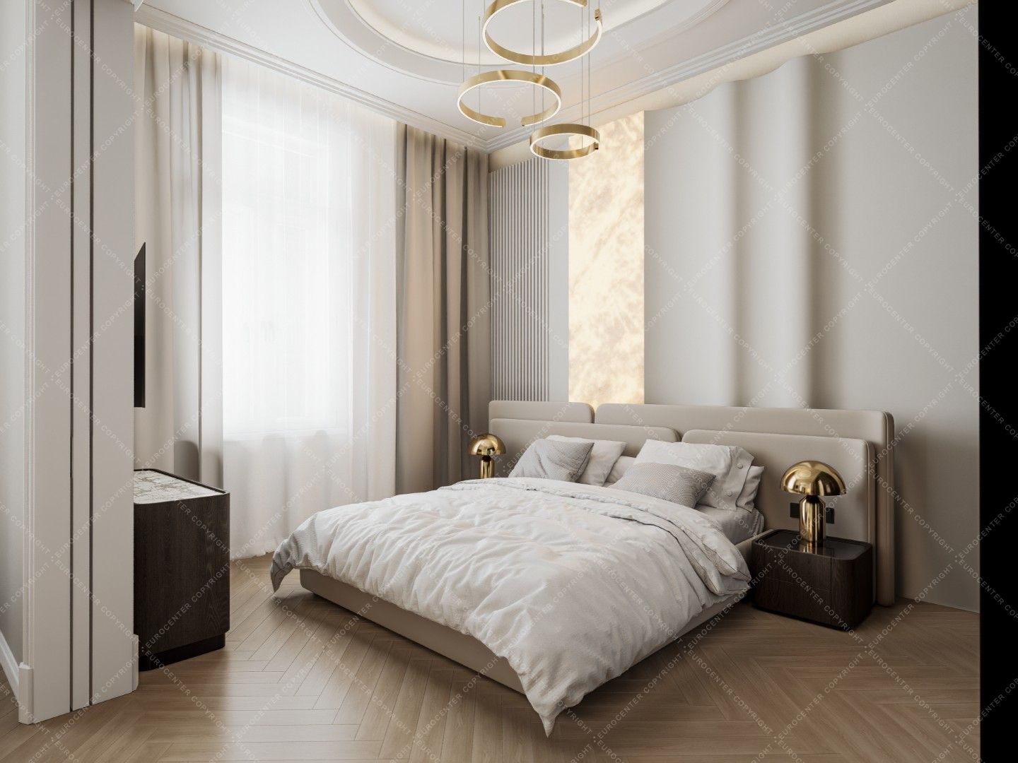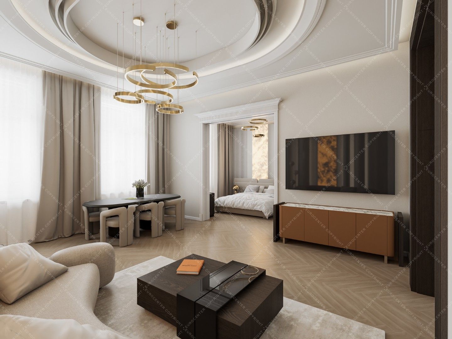 Smart TVs, a 5.1 home theater system and air conditioners were installed in the living room and bedrooms. Decorations by well-known designers (Kare, Bo Concept, Einholtz, etc.) give the apartment a truly modern feel.