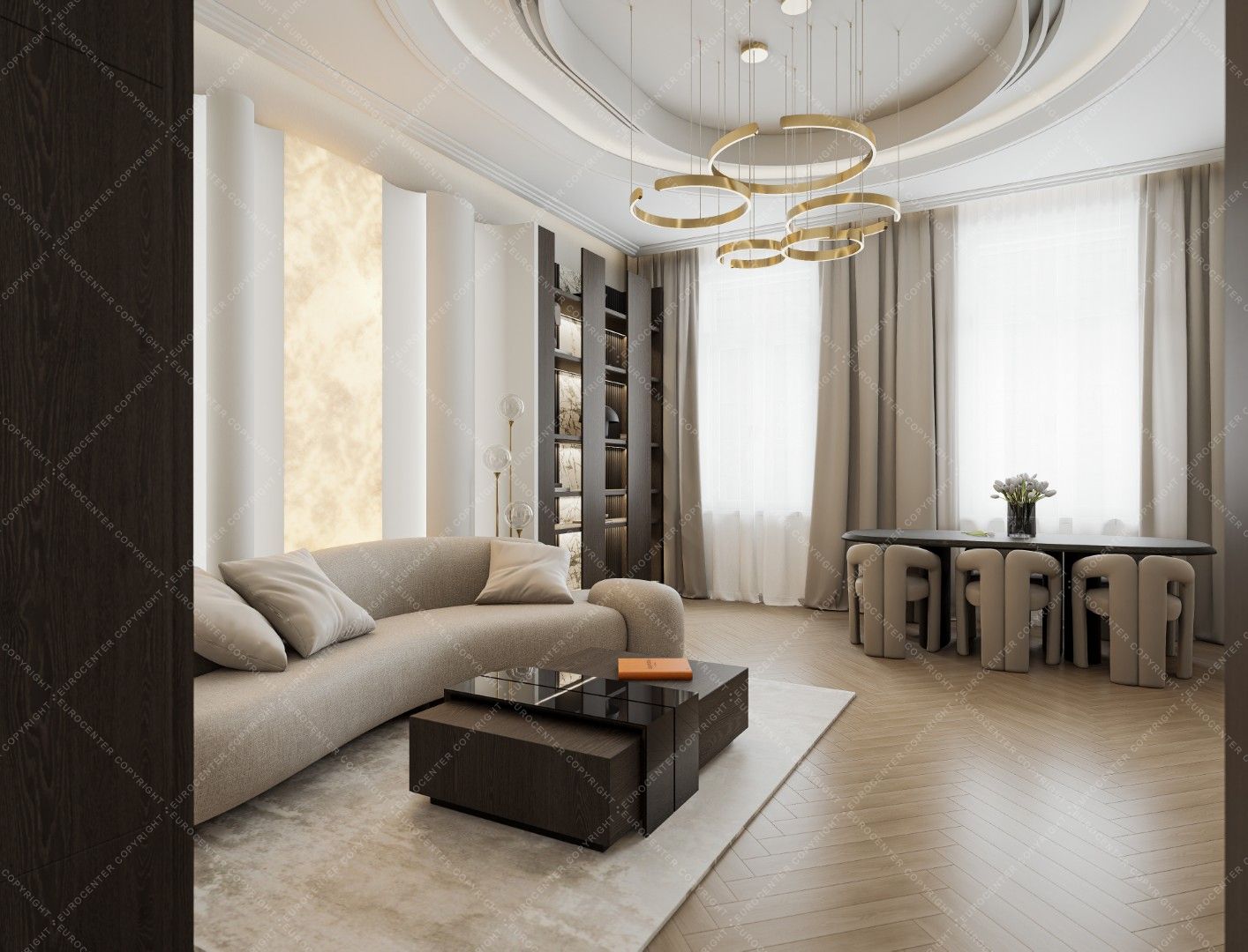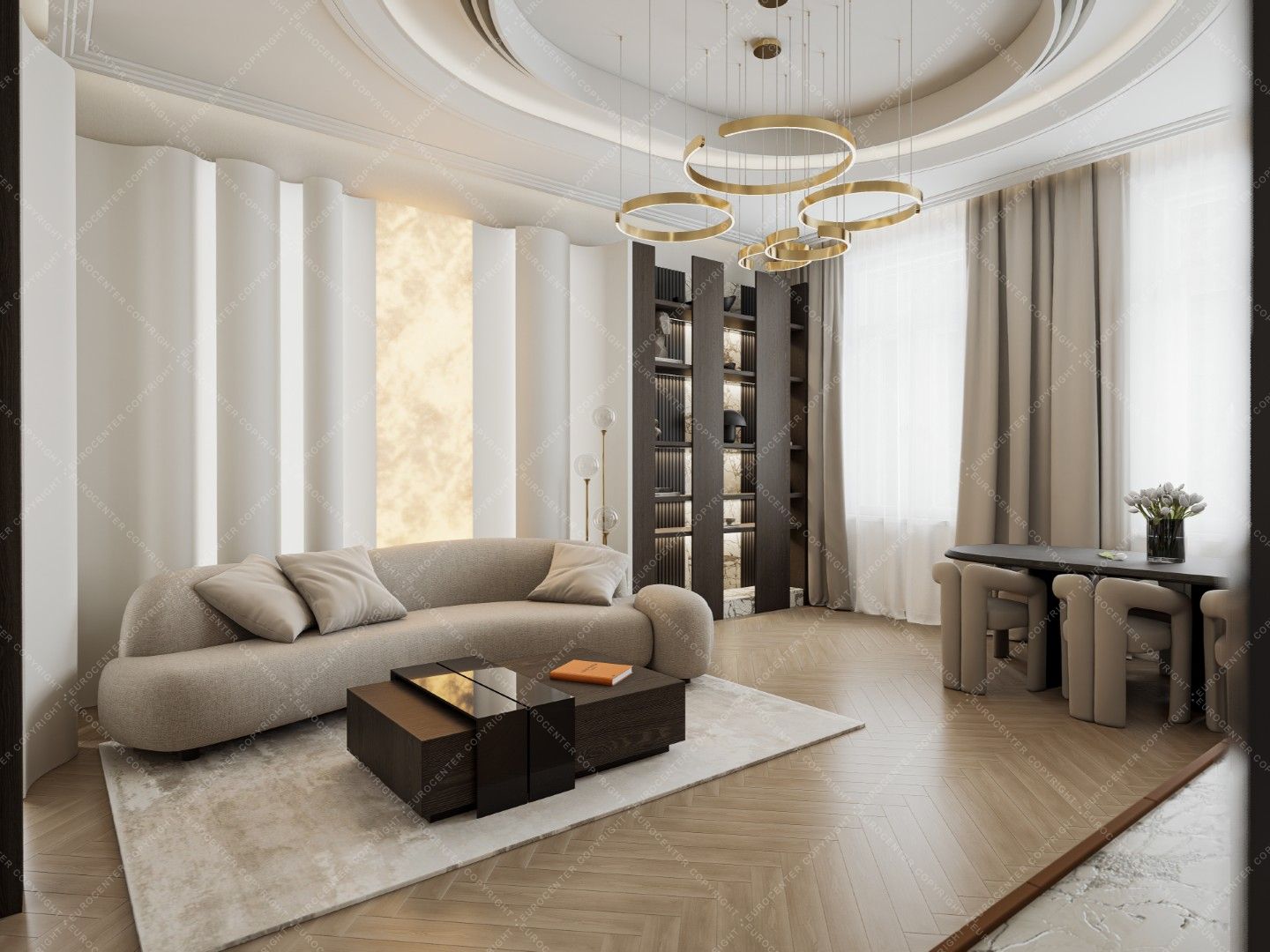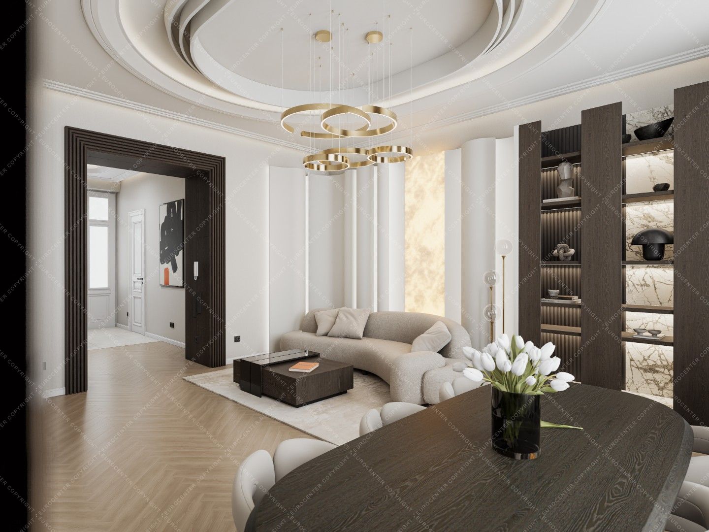 Smart TVs, a 5.1 home theater system and air conditioners were installed in the living room and bedrooms. Decorations by well-known designers (Kare, Bo Concept, Einholtz, etc.) give the apartment a truly modern feel.