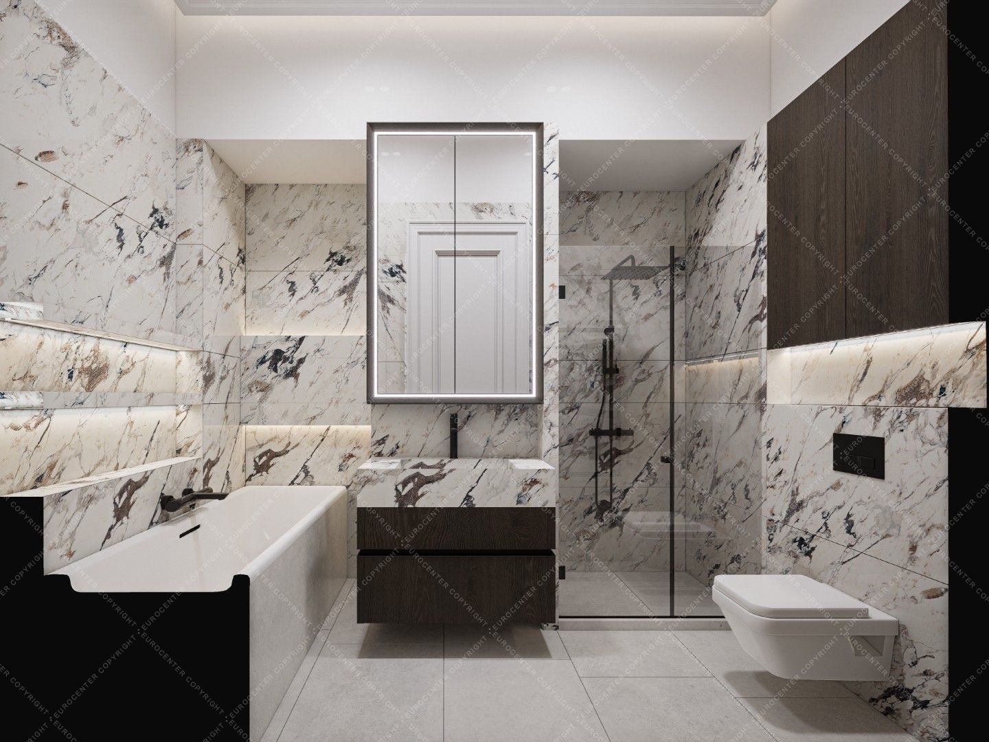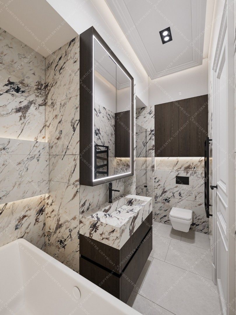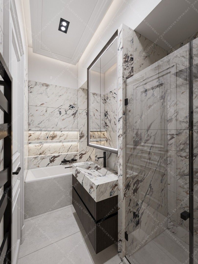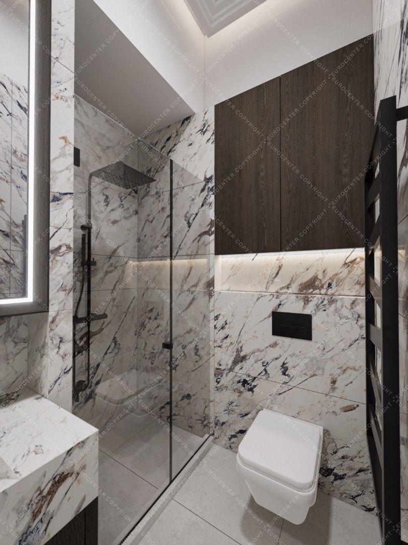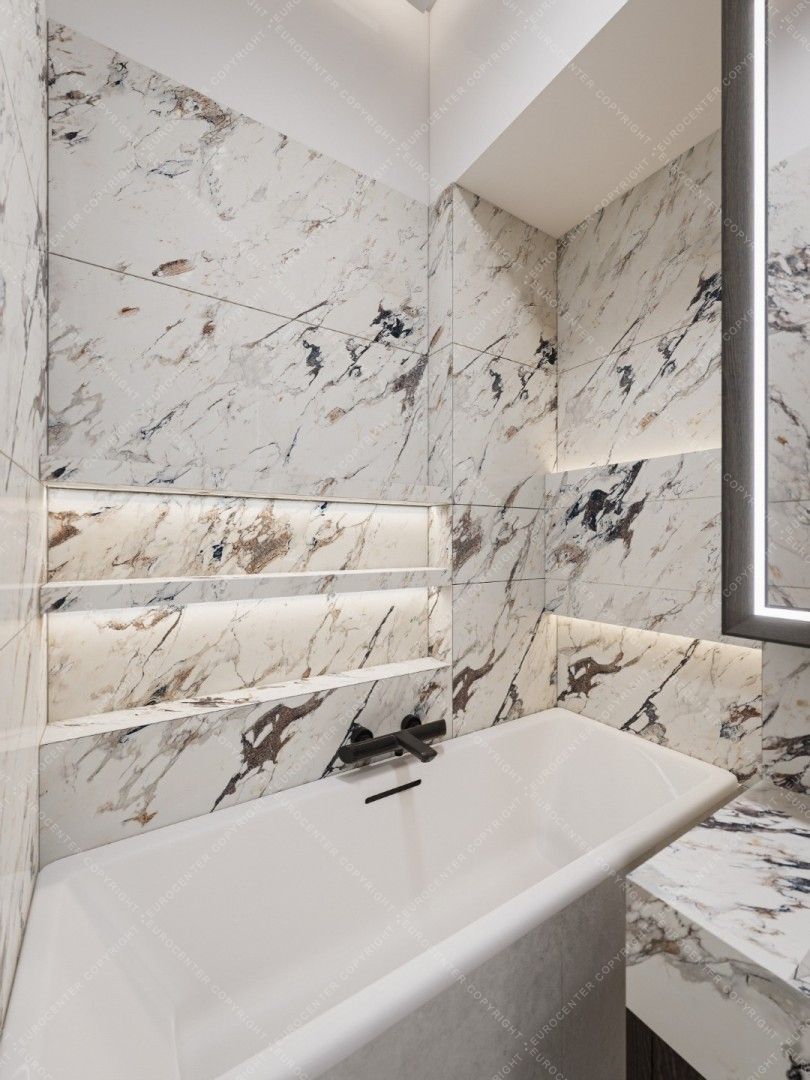 The bathrooms have high-quality sanitary ware and Italian design coverings, that match the style of the apartment.