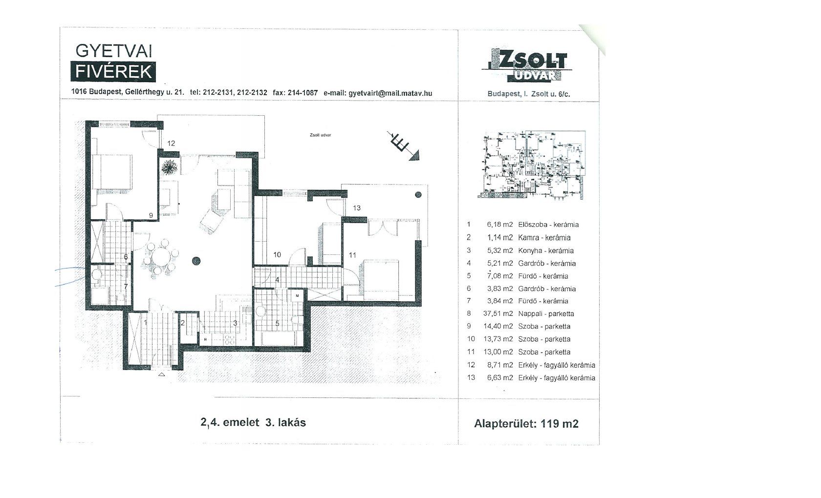 A recently refurbished, 4th floor apartment is for rent in a newly built "Zsolt udvar" condominium.