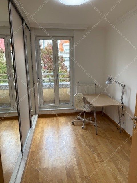 The property is partially furnished. The kitchen is fully equipped with modern appliances, and both a washing machine and dryer are available in the bathroom. The living room overlooks a quiet, green inner courtyard, offering a peaceful and pleasant environment while still being located in a well-connected urban area.