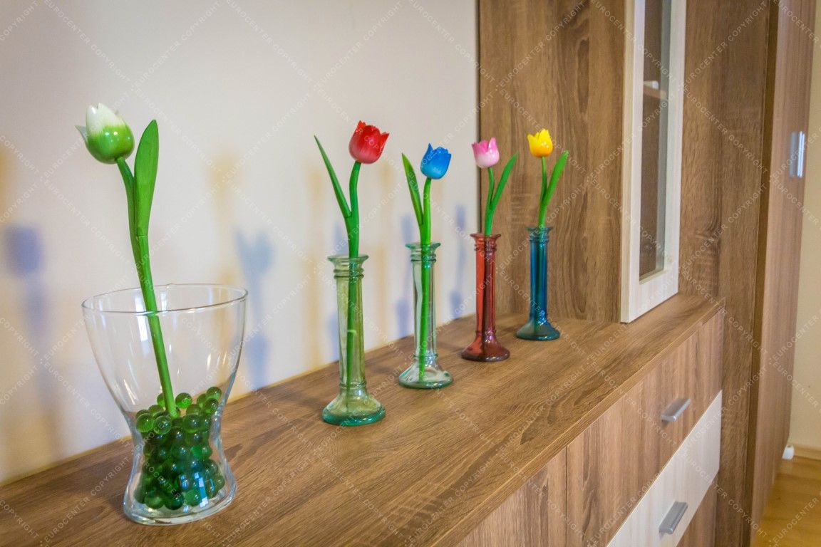 The flat is furnished and equipped with air conditioning, dishwasher, fridge, ceramic cooktop, electric oven and washing machine. The property offers 2 bedrooms, one bathroom and a separate second toilet. The tenants will also have access to a private parking lot in the underground garage of the building.