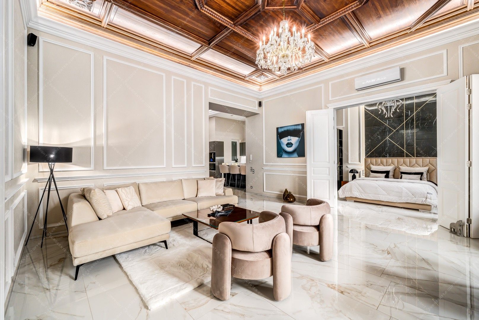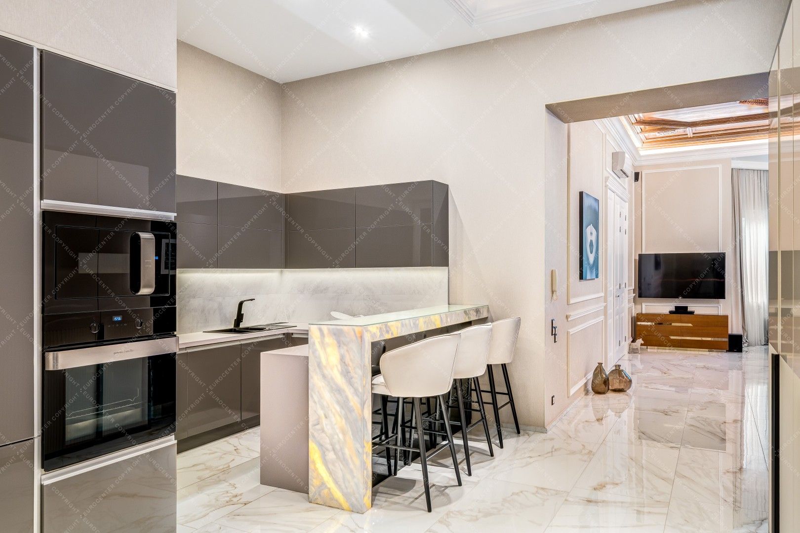Bright apartment with an open-plan kitchen, 2 bedrooms plus a study that could also be used as a children's room. 2 bathrooms. 120 square meters.