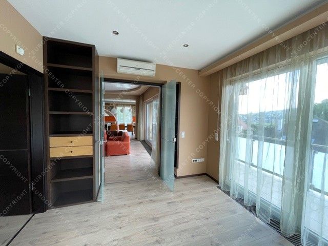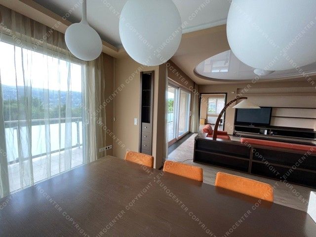 It is equipped with both built-in and free-standing furniture, individual gas heating, electric aluminum shutters, insect screens, enhanced thermal and acoustic insulated security windows, a multi-point security entrance door, terrace door heating, radiators, underfloor heating in the bathrooms and hallway, air-conditioning, and an alarm system connected to Multi Alarm. High-quality fixtures include Laufen sanitary ware, Hansgrohe taps, a washing machine and dryer, a central water softening system, and a fully fitted kitchen with built-in appliances.