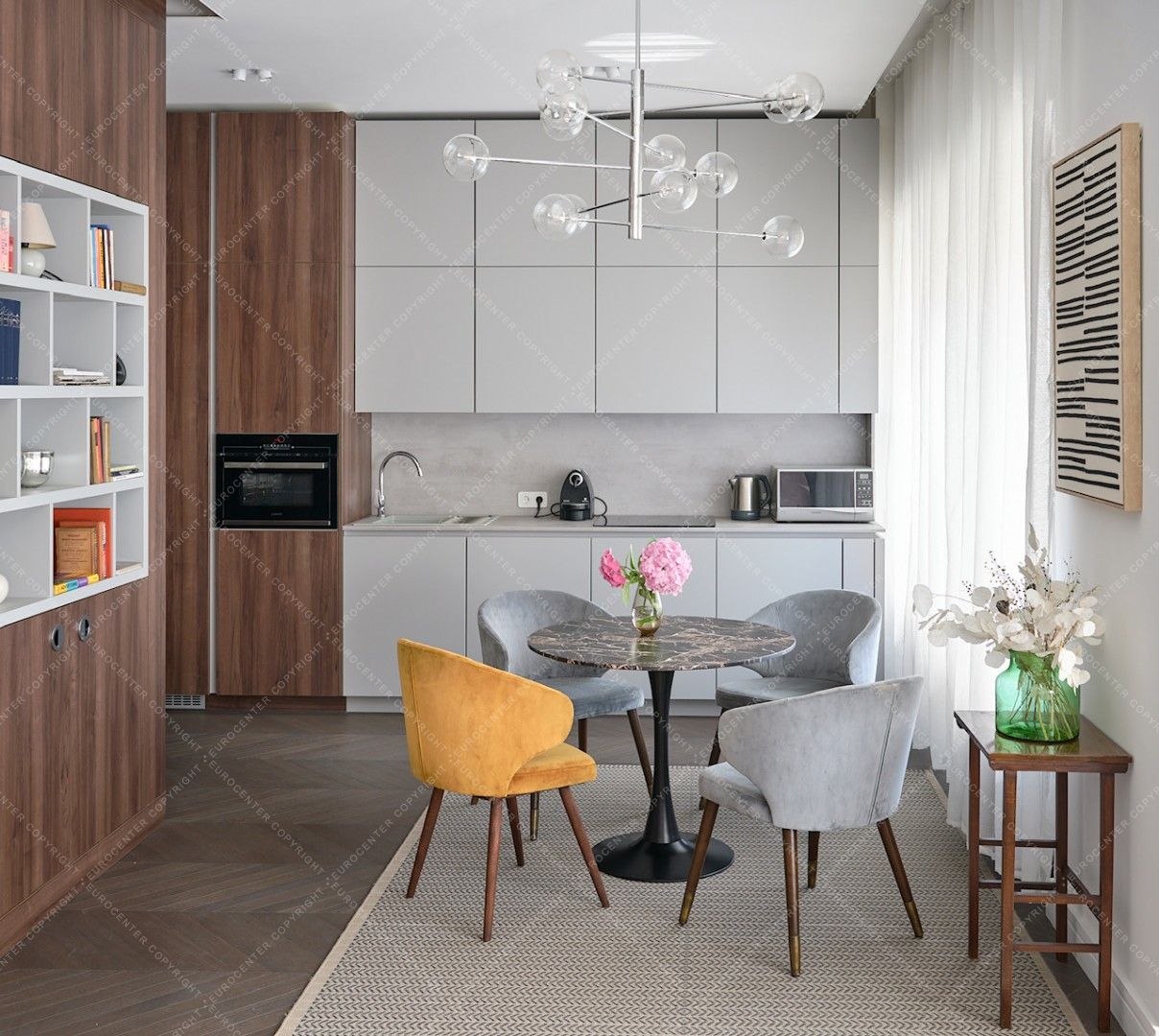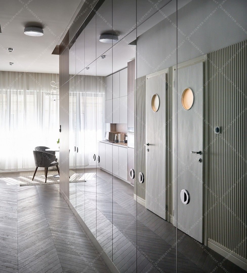 The apartment also includes a separate WC and a small laundry room. Large sound- and heat-insulated windows facing the street ensure bright interiors. All windows are fitted with automatic shutters.