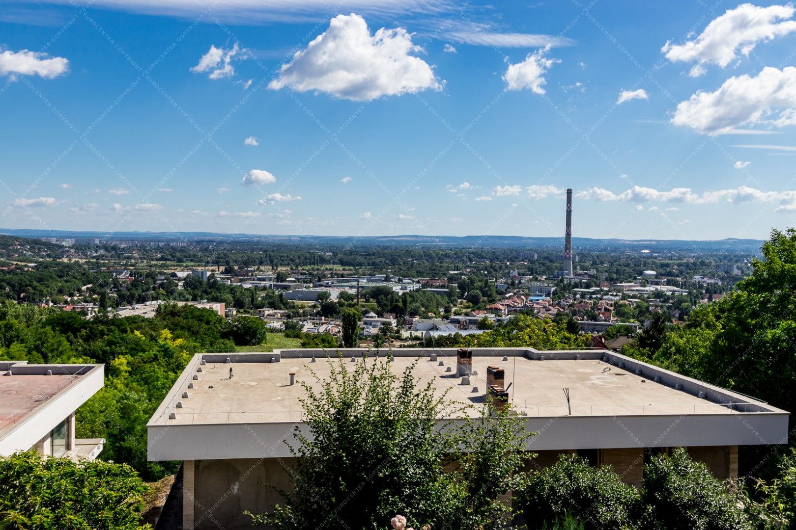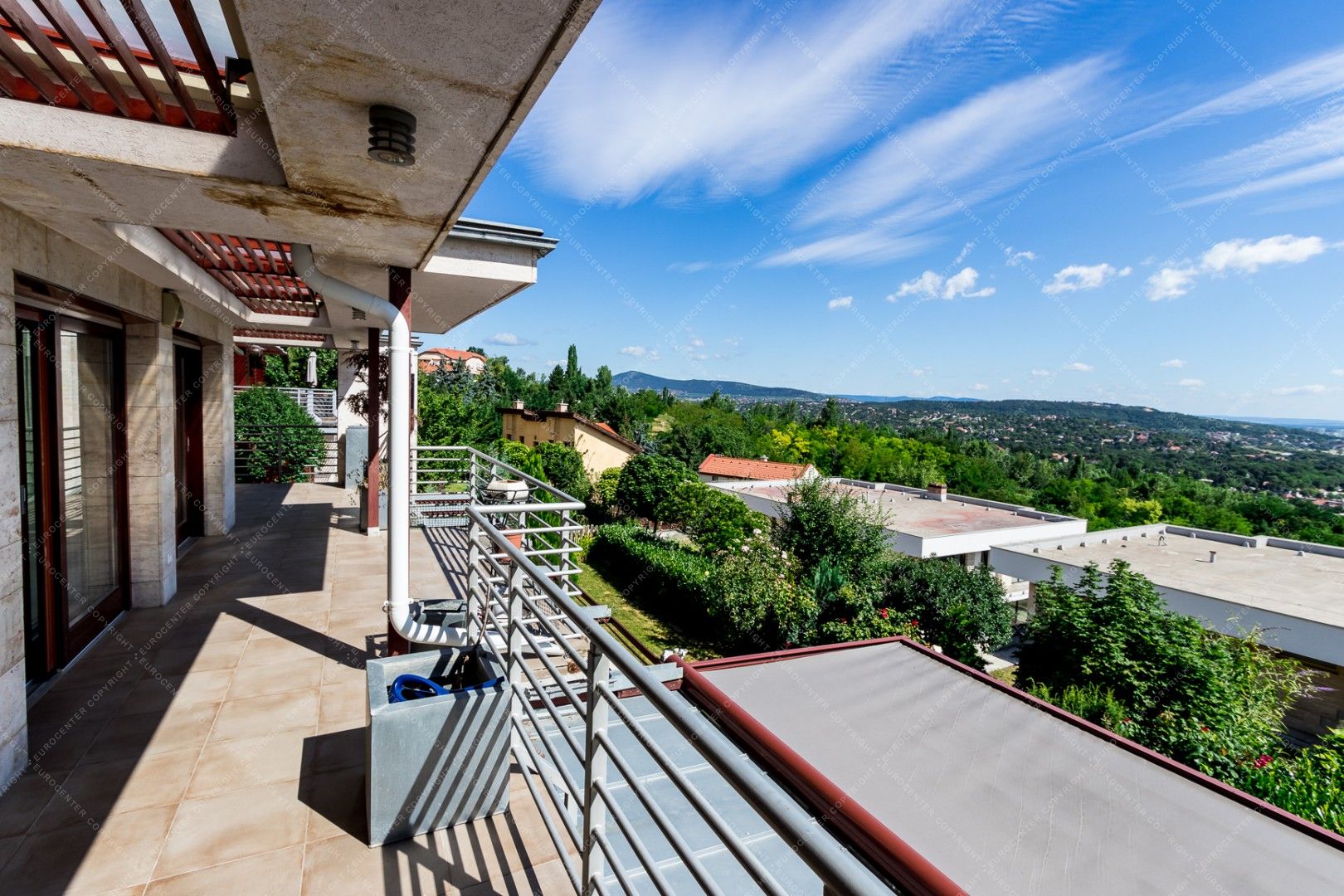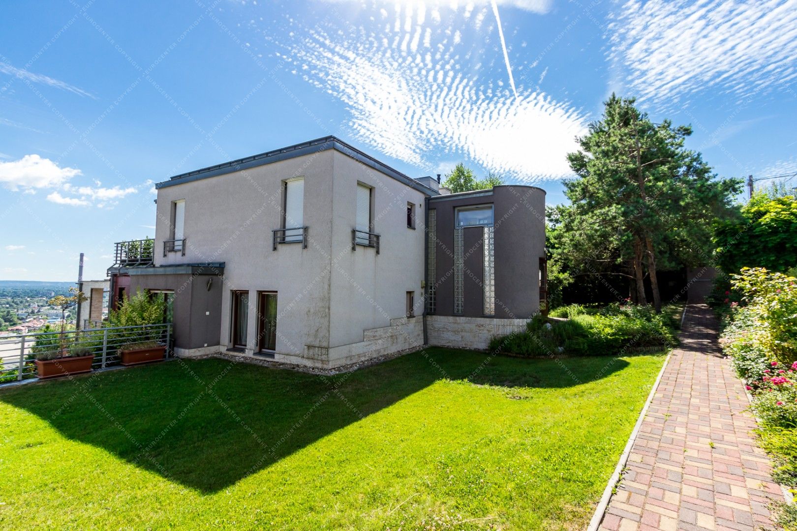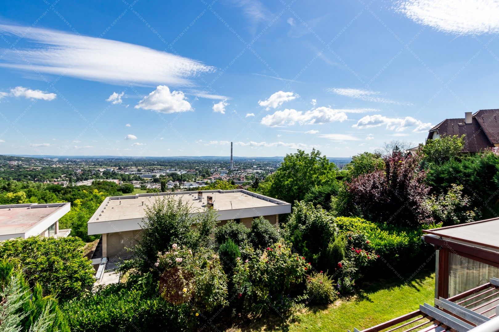 The newly built, panoramic property is equipped with alarm system and air conditioning as well. It has a private garden for shared use.