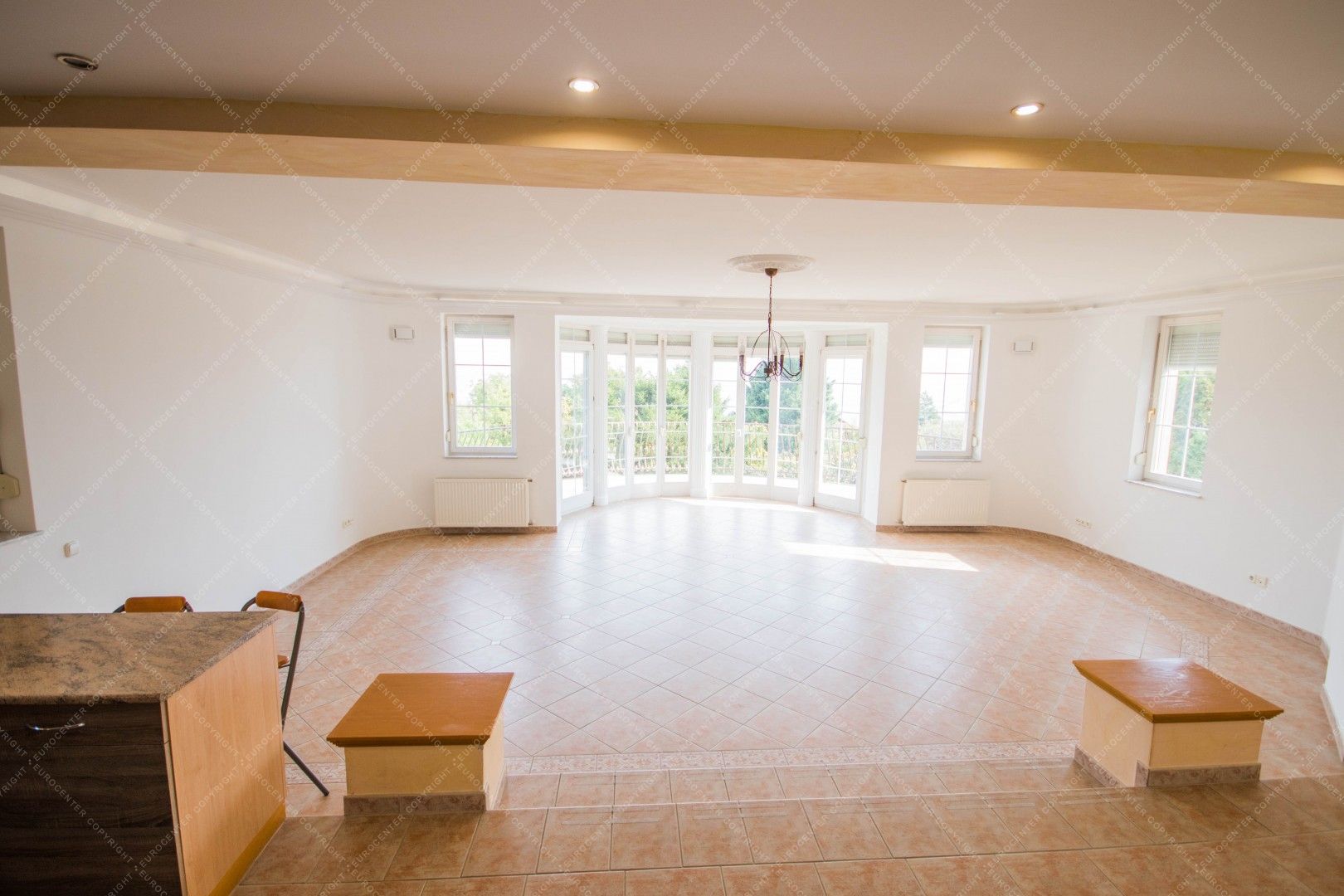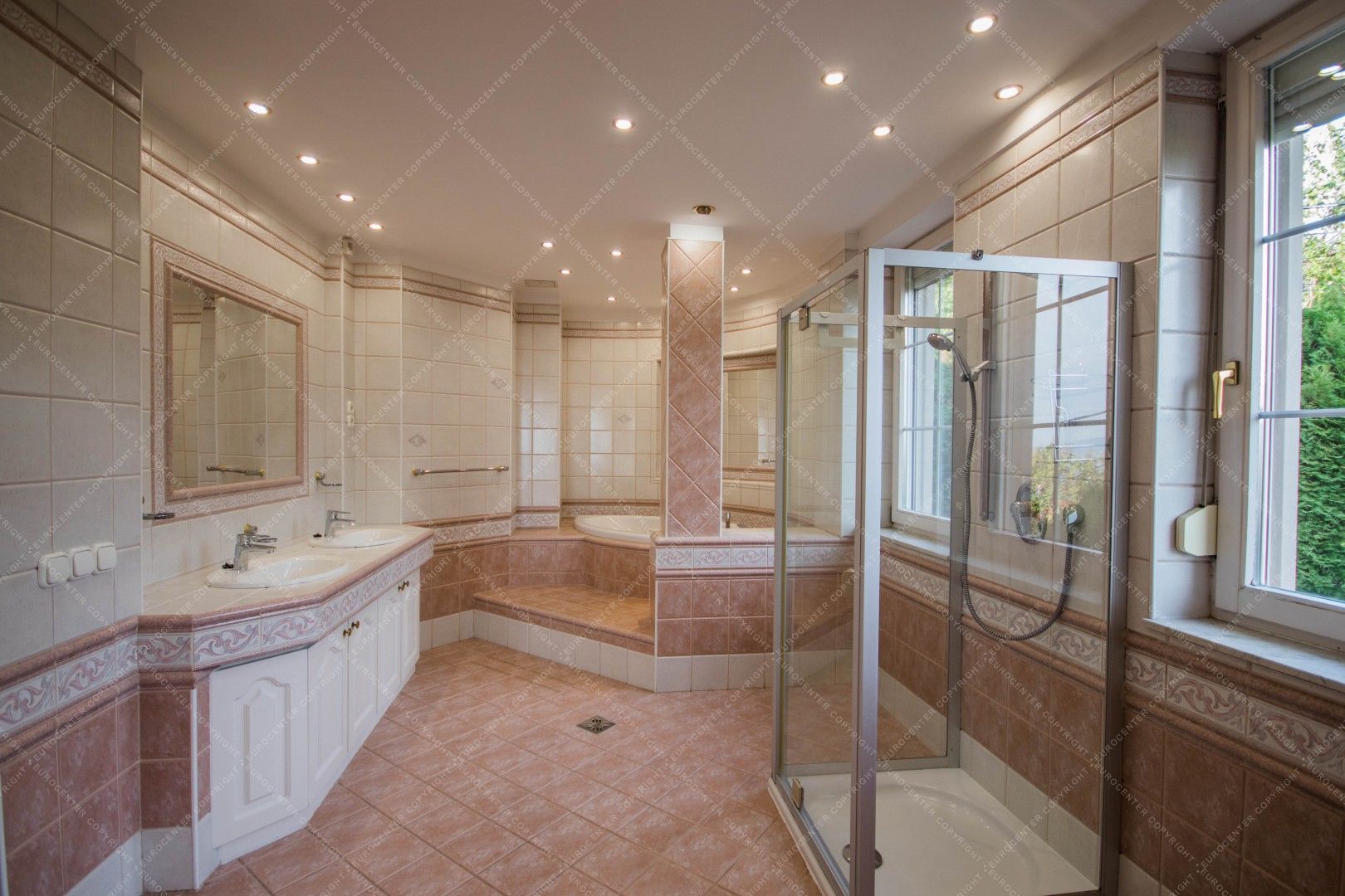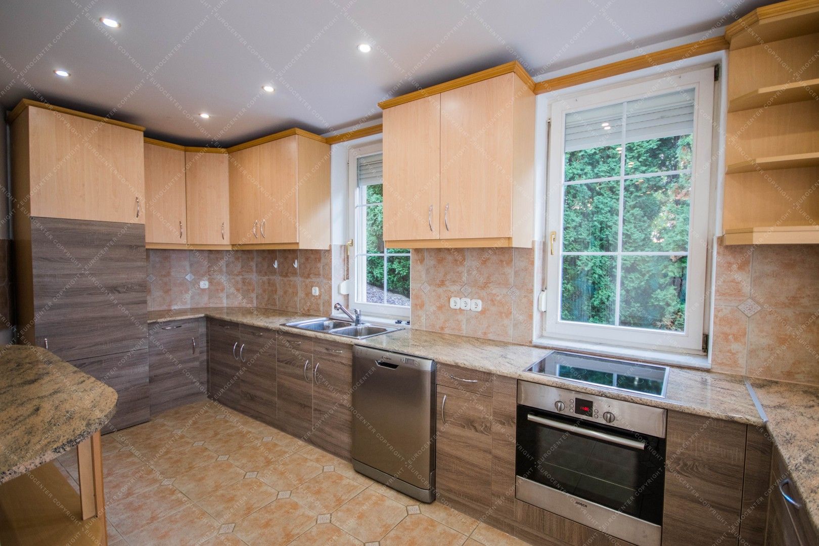 4 balconies, a terrace, 2 garage spaces and a common used garden also belongs to the renewed and alarm protected property.