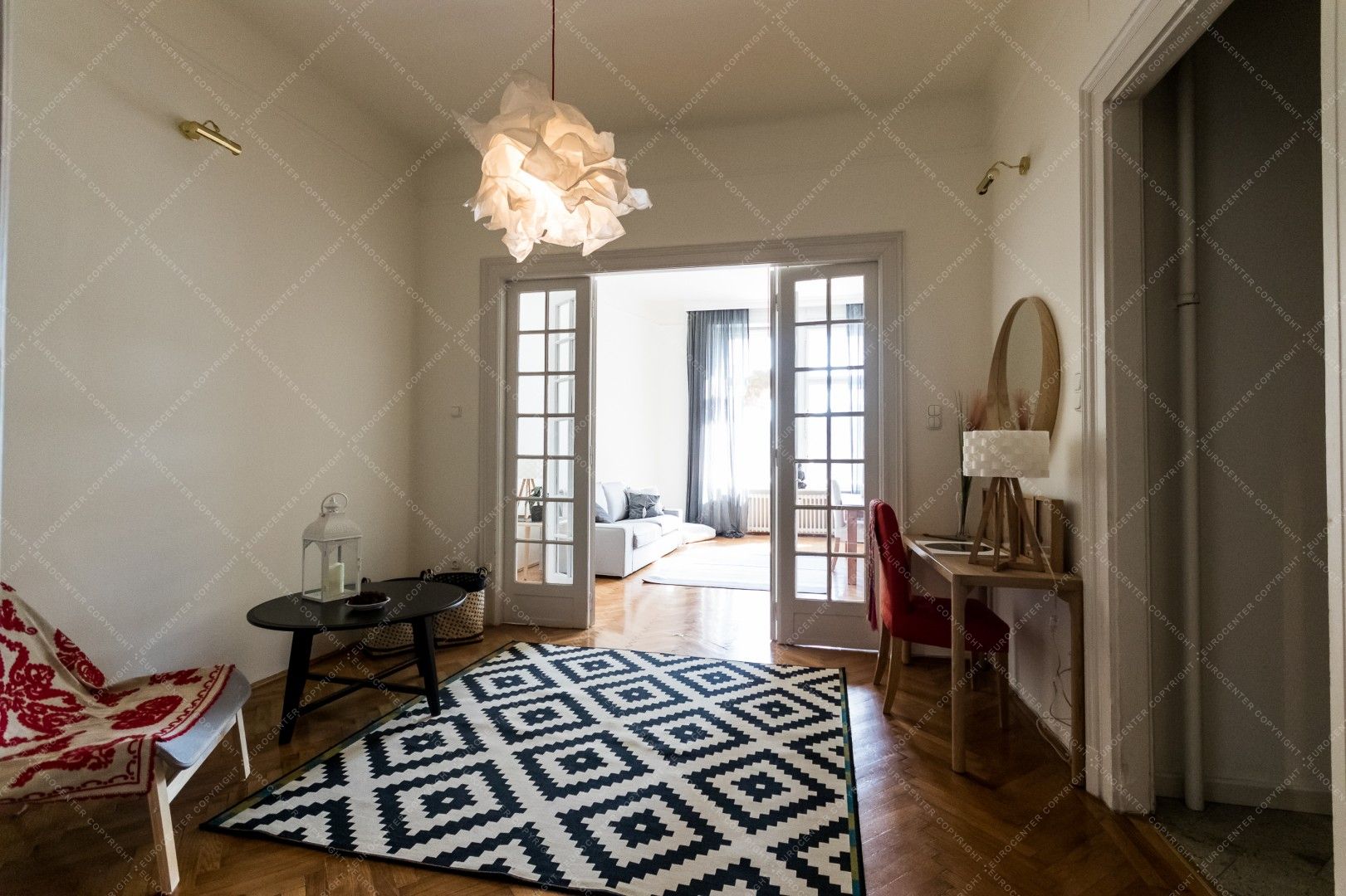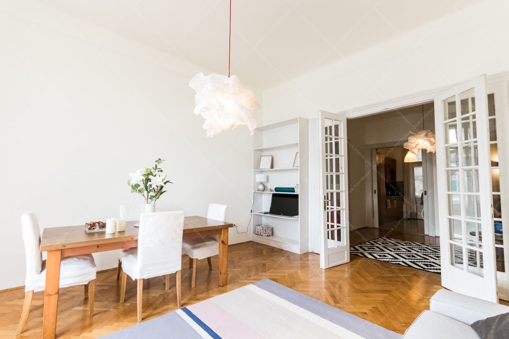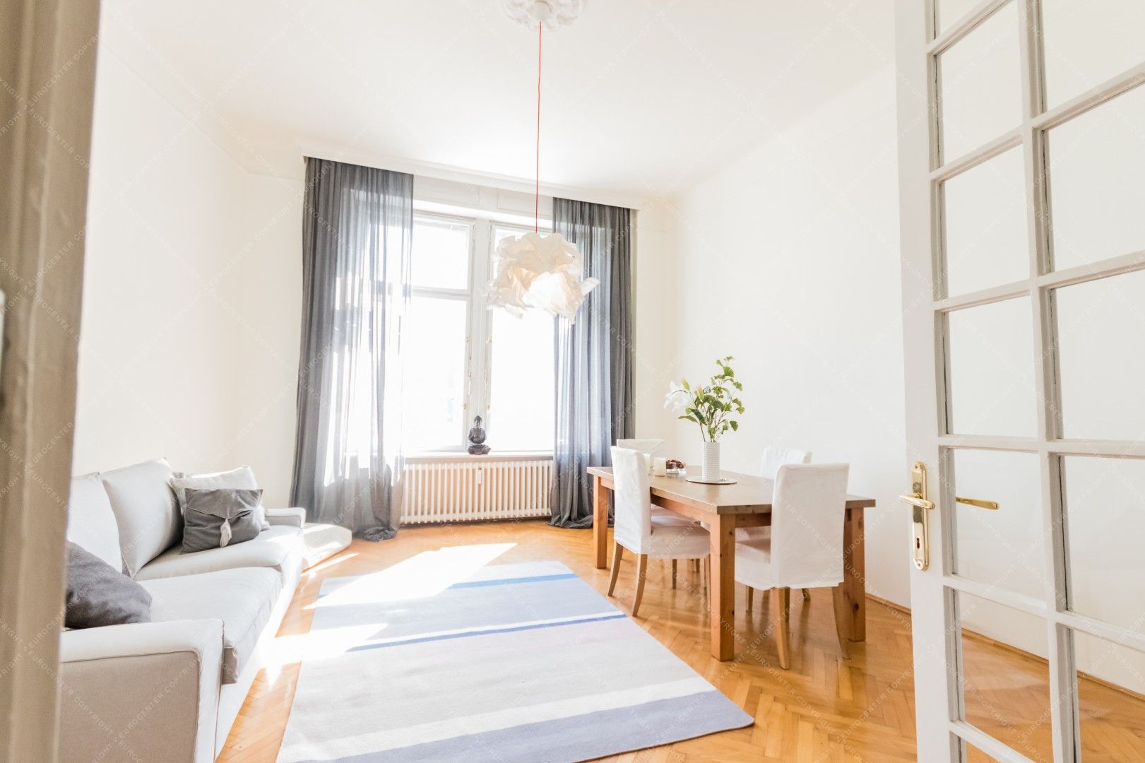 We offer for rent a 100 sqm apartment, in district 5 at the riverside. It is situated in an elevarored, classical building 3rd floor.