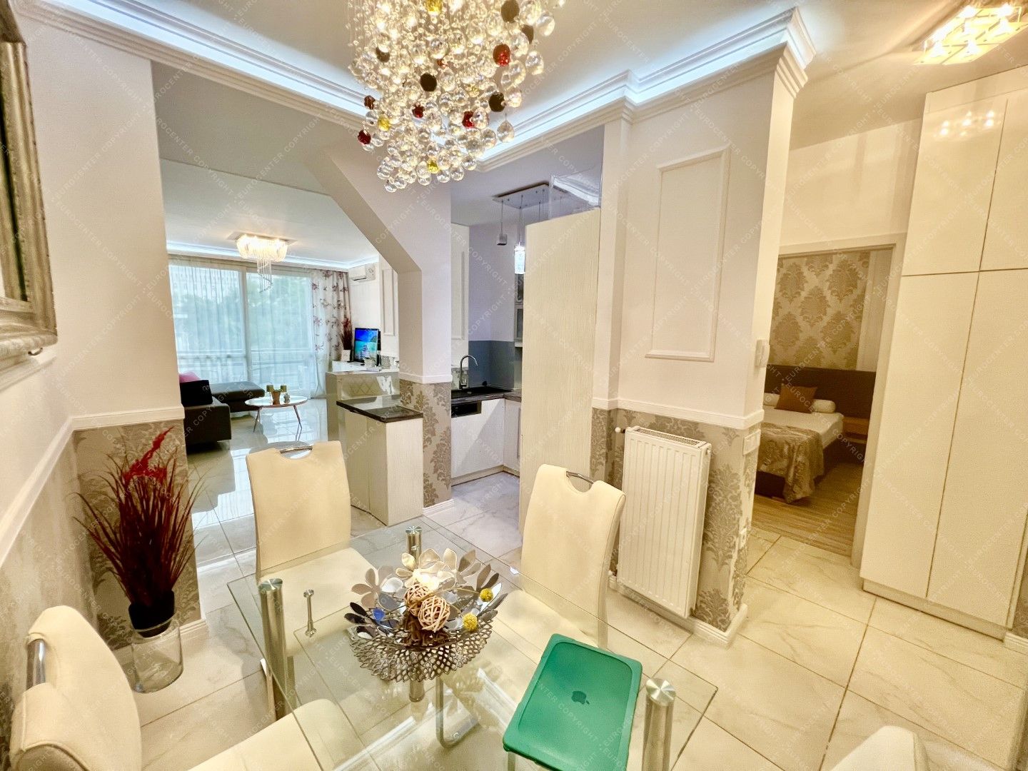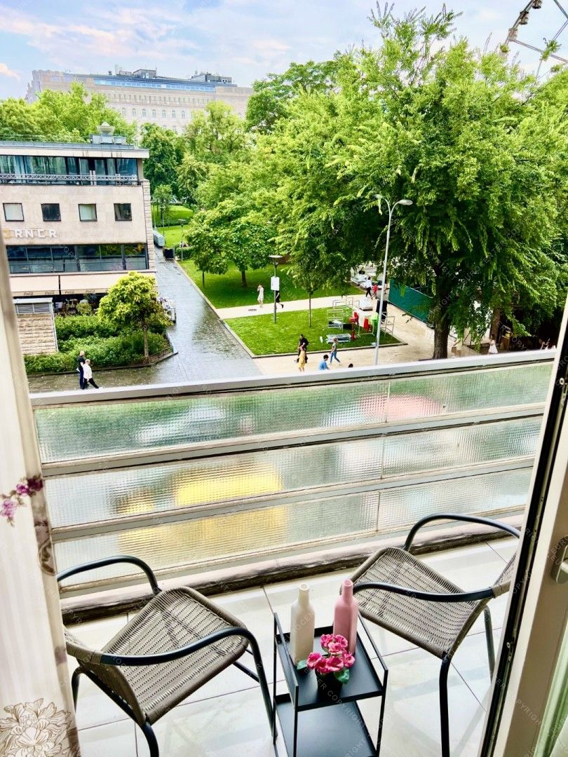 We are offering a 67 sqm fully furnished and equipped apartment with a panoramic view for rent in district 5, Hercegprímás street next to Deák square in downtown. It is situated in a classical style building on the 2nd floor. The building has got an elevator. The flat consists of 2 bedrooms, a living room with a kitchen with dining area and two bathrooms with toilet. The apartment is very sunny. The apartment is furnished to high standard. Common fee: 45.000 HUF/month. Balcony belongs to the property. PET FRIENDLY. Public transportation is excellent.