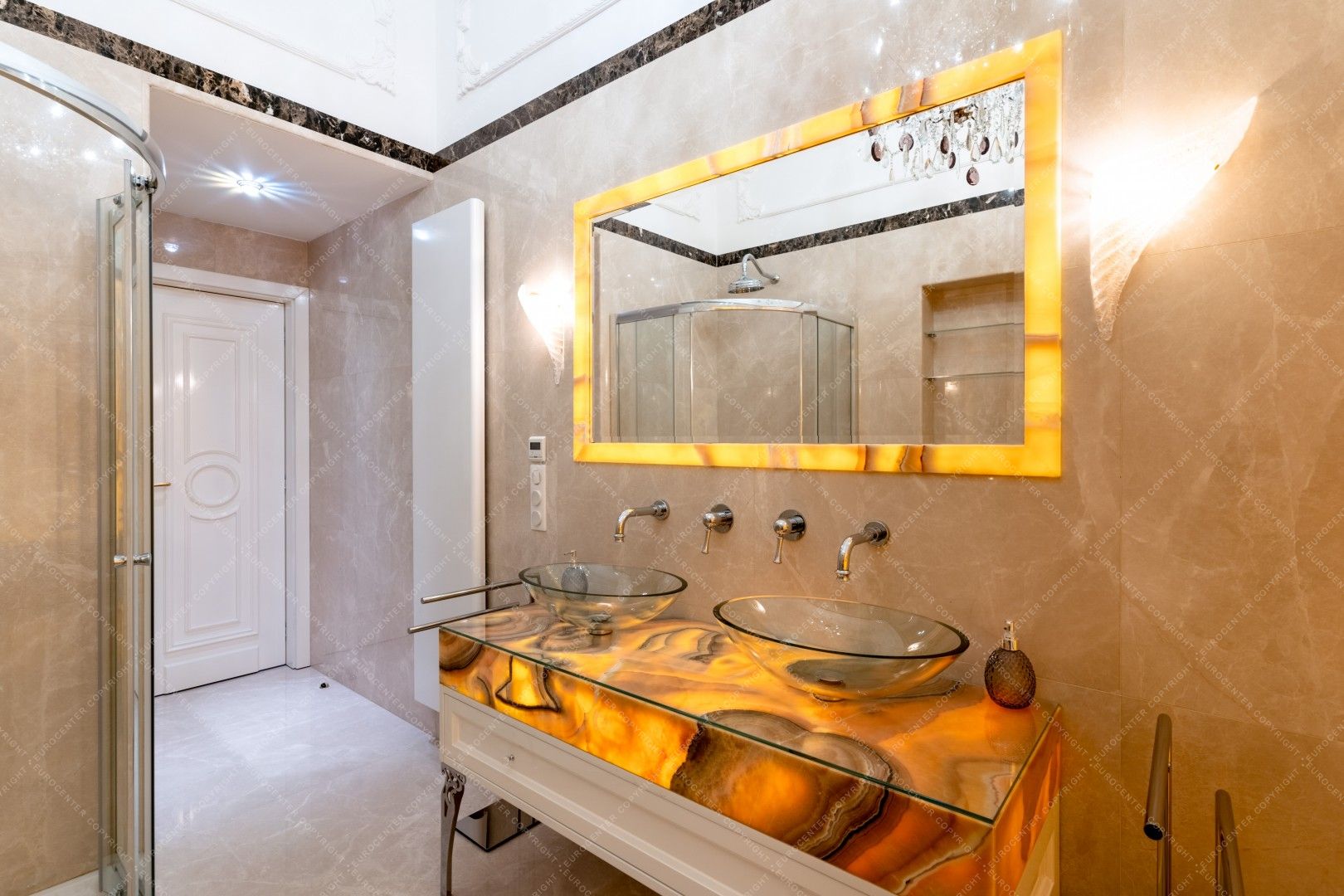 The property has been furnished with custom-made furniture and decorated with 100-year-old chandeliers, mirrors and other accessories, as well as onyx and marble coverings.