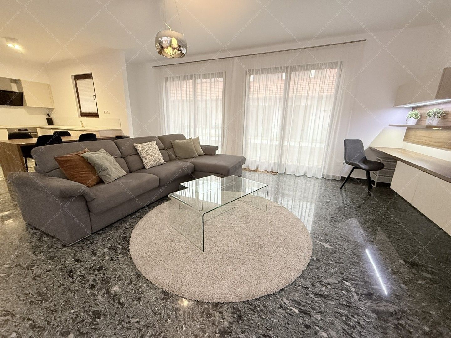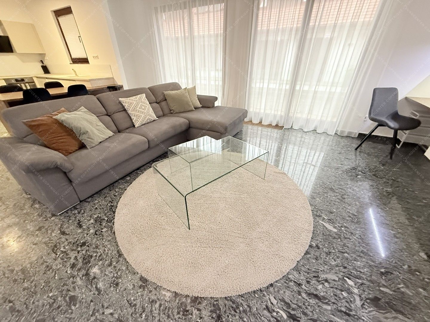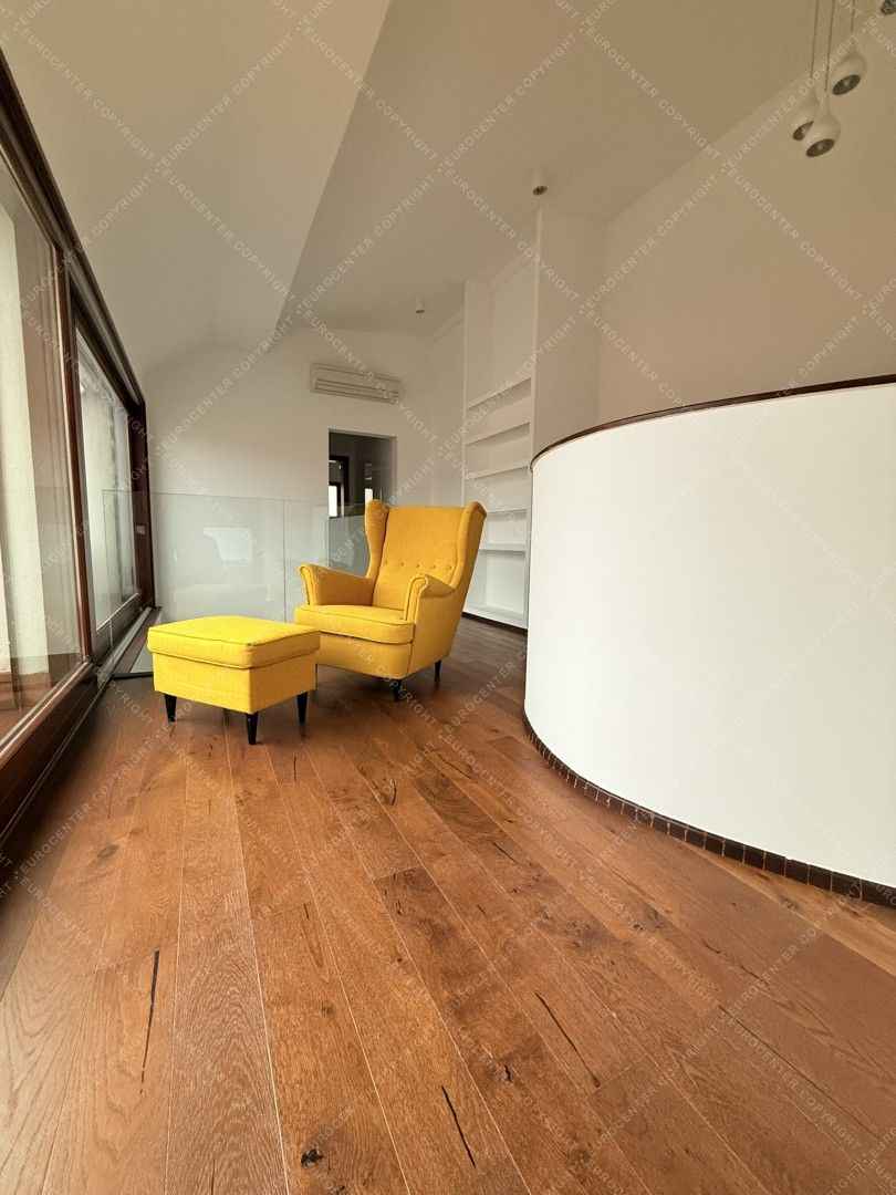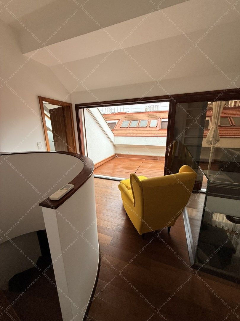 An elegant Andrássy Avenue apartment for rent. In the lower part of the apartment there is a living room, a guest toilet and a utility room. The kitchen + dining room and living room are 56m2, spiced with large windows, the kitchen is fully equipped. Upstairs the bedrooms are superbly separated, bathroom has marble tiling. All rooms have heating and cooling. Quality windows, tiles and glass balustrades characterize the interior. The second bedroom will be furnished according to the needs.