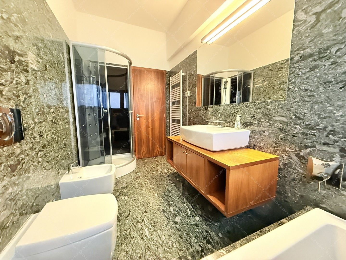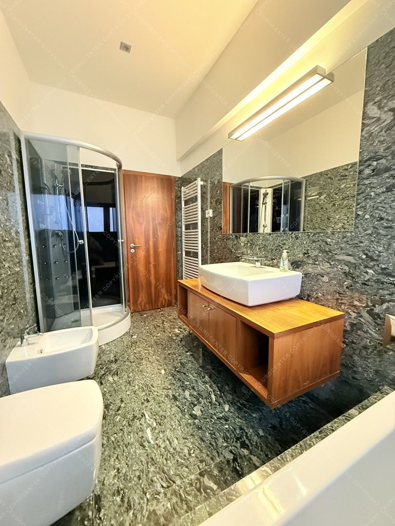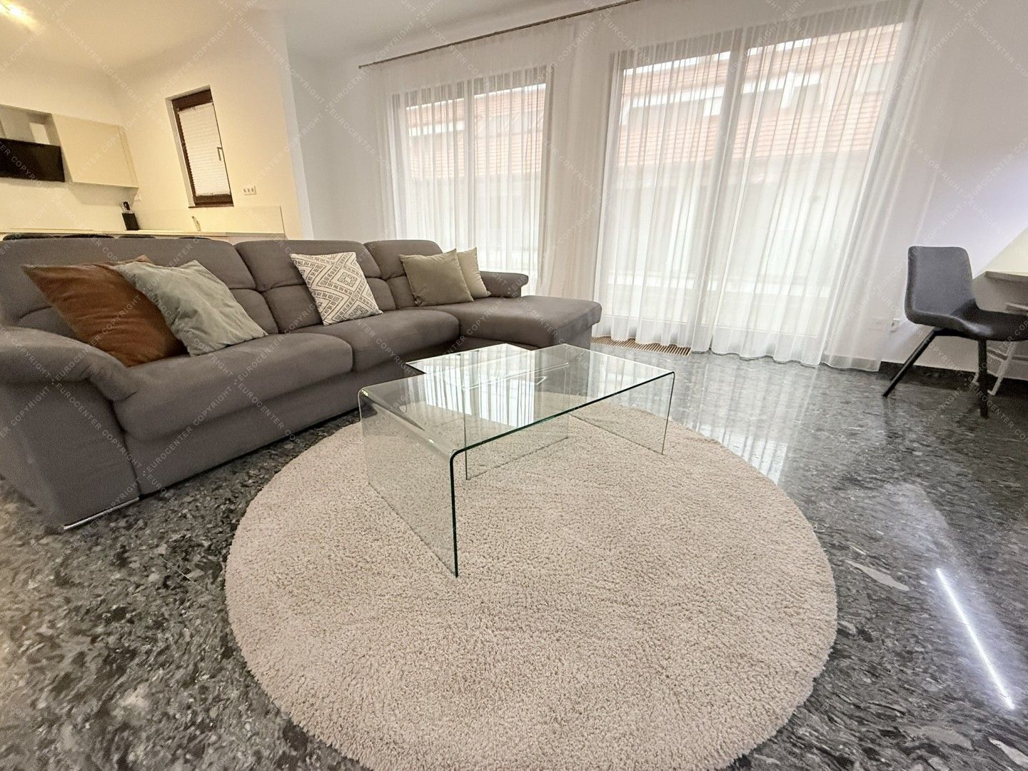 An elegant Andrássy Avenue apartment for rent. In the lower part of the apartment there is a living room, a guest toilet and a utility room. The kitchen + dining room and living room are 56m2, spiced with large windows, the kitchen is fully equipped. Upstairs the bedrooms are superbly separated, bathroom has marble tiling. All rooms have heating and cooling. Quality windows, tiles and glass balustrades characterize the interior. The second bedroom will be furnished according to the needs.