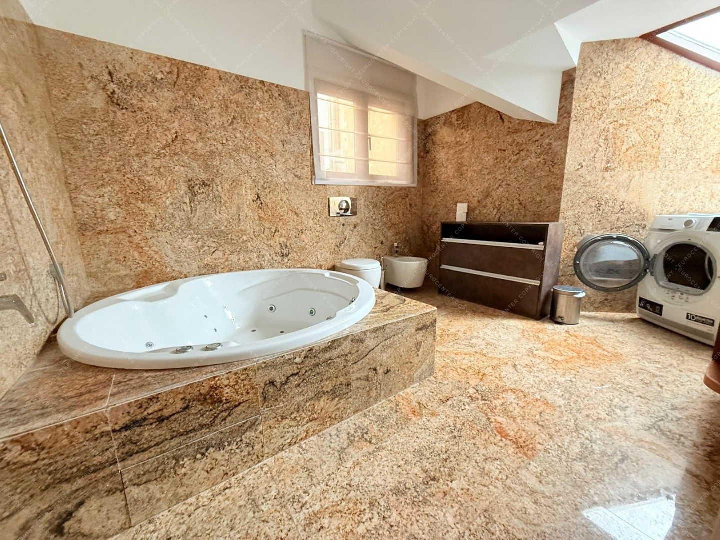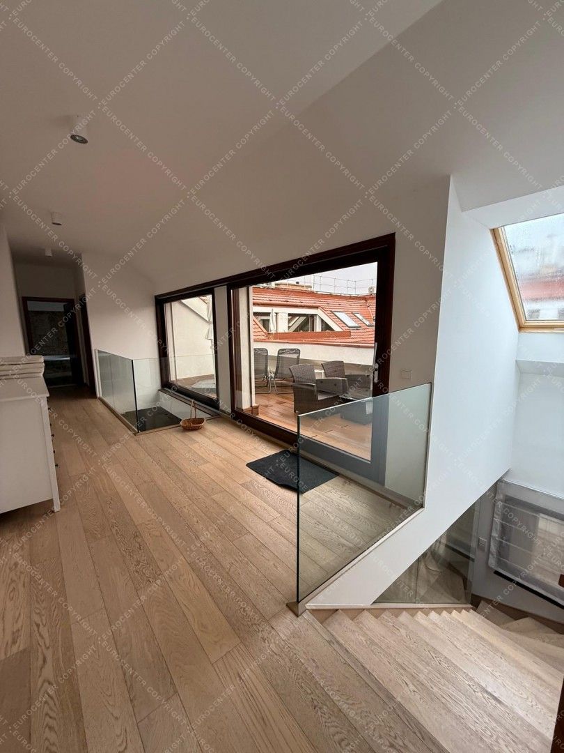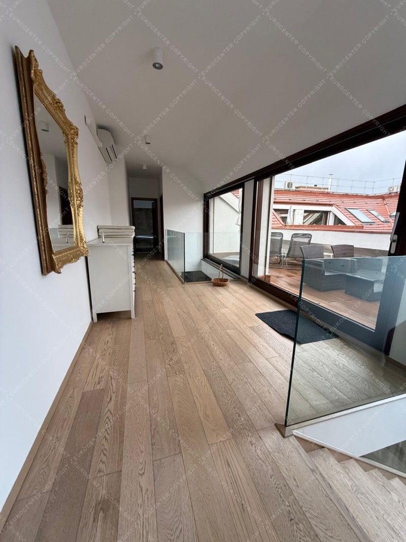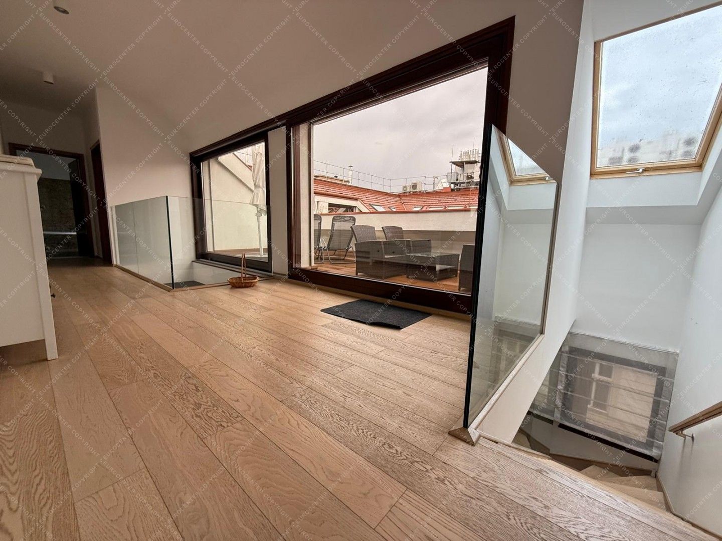 We offer for rent in the city center of Budapest, a top floor, fully renovated, duplex apartment on Andrássy út. The nicely furnished apartment is 170 sqm, has a spacious living room with fireplace, 4 bedrooms, a bathroom, a well equipped American kitchen with dining area and a huge terrace also belongs to the property. Transport is great, Metro line M3, M2, M1, buses and trams are easily approachable. Cafés, restaurants, shops are nearby. Only long term rent!