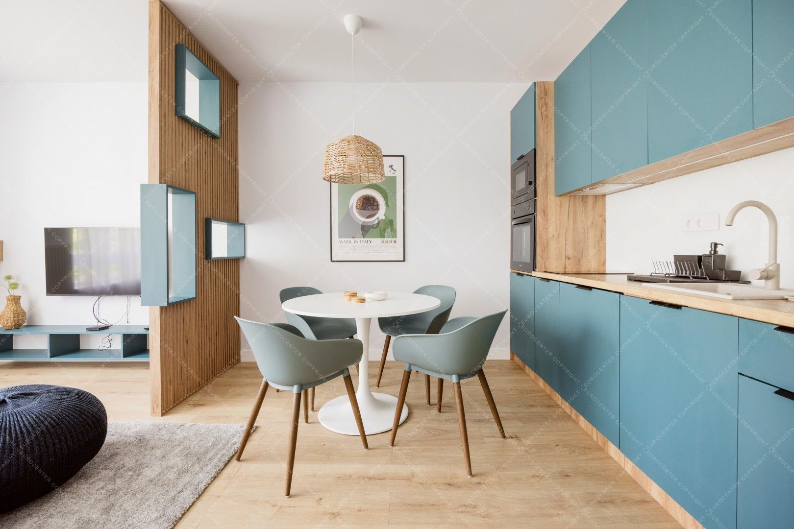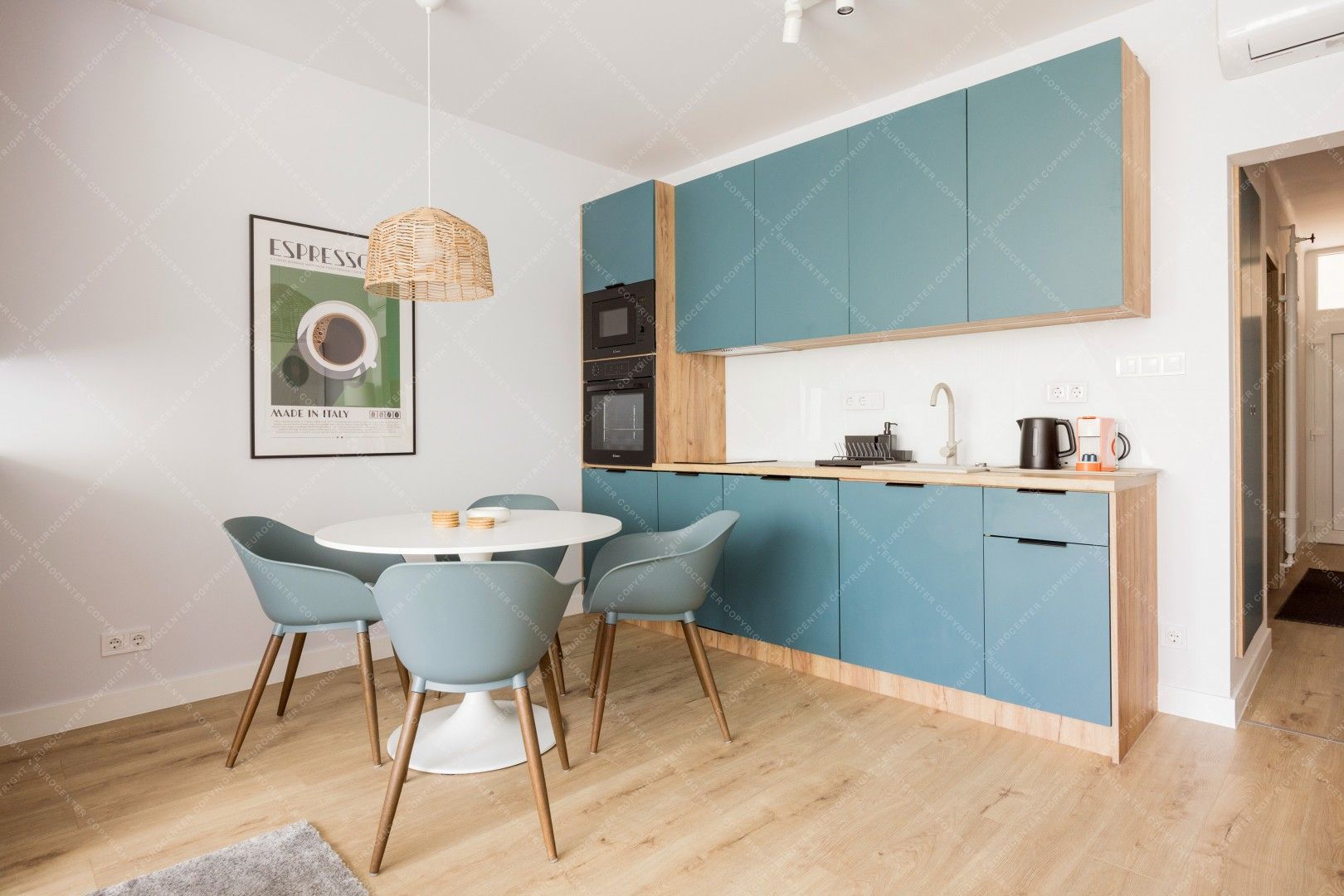 This youthful apartment has an open-plan kitchen and living room, a bedroom, and a bathroom. The air-conditioned property is fully equipped and furnished.