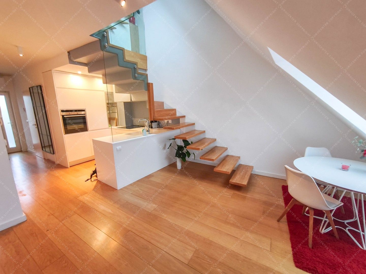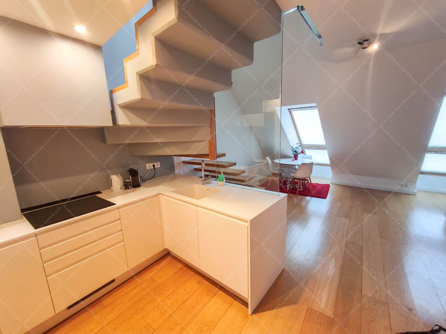A 90 sqm, 1-bedroom duplex apartment is available for long-term rent in Székely Mihály Street, located in a roof-top extension completed in the 2010s.