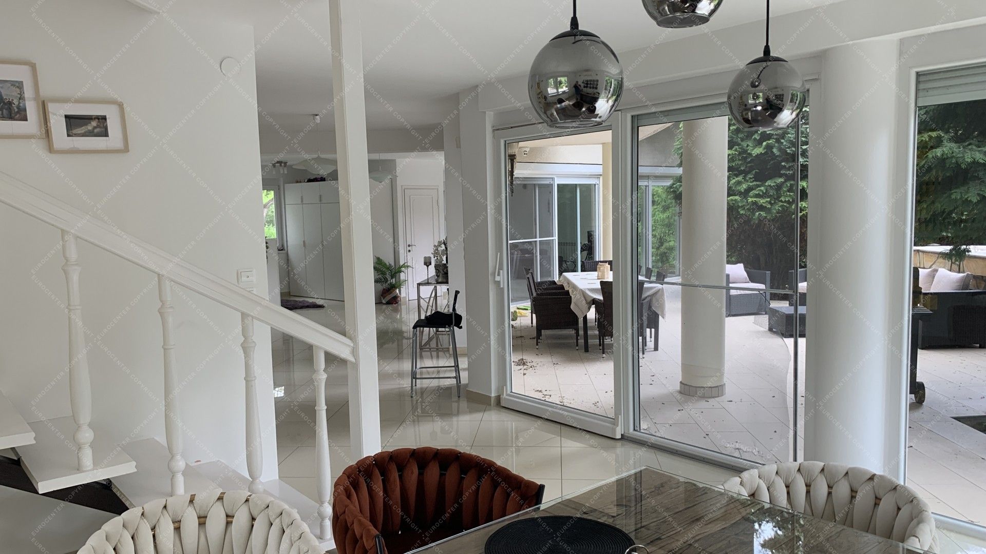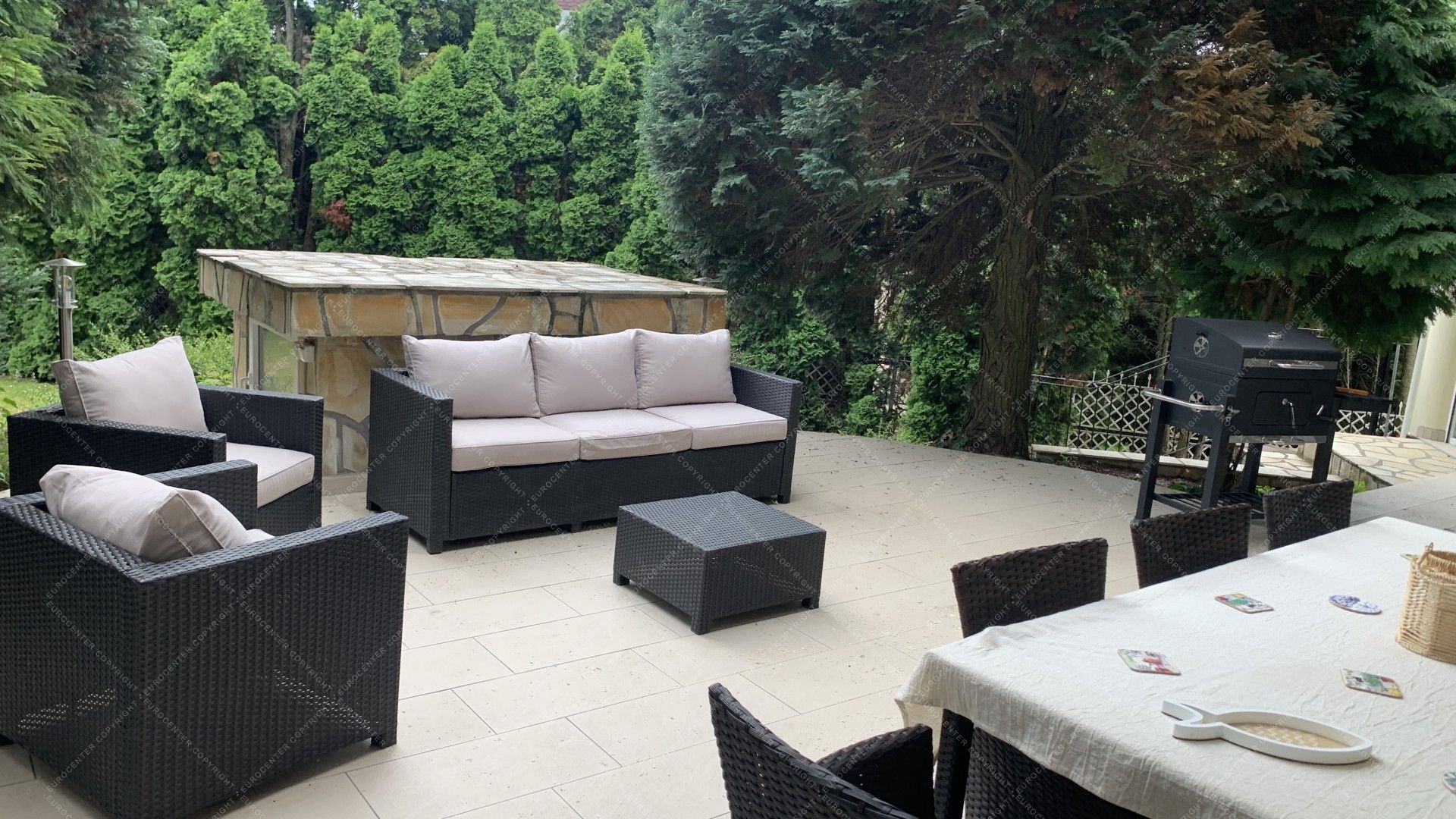 3-storey detached house, situated 5 minutes from the French school is for rent. It consists of 5 bedrooms, 2 living rooms, 5 bathrooms, a shower, 2 restrooms, a dining room and a well equipped American style kitchen. 2 balconies, 3 terraces, 4 garages, 2 parking spots, an indoor swimming pool, sauna and garden also belong to the alarm protected property. There is a possibility to rent it with or without furniture.