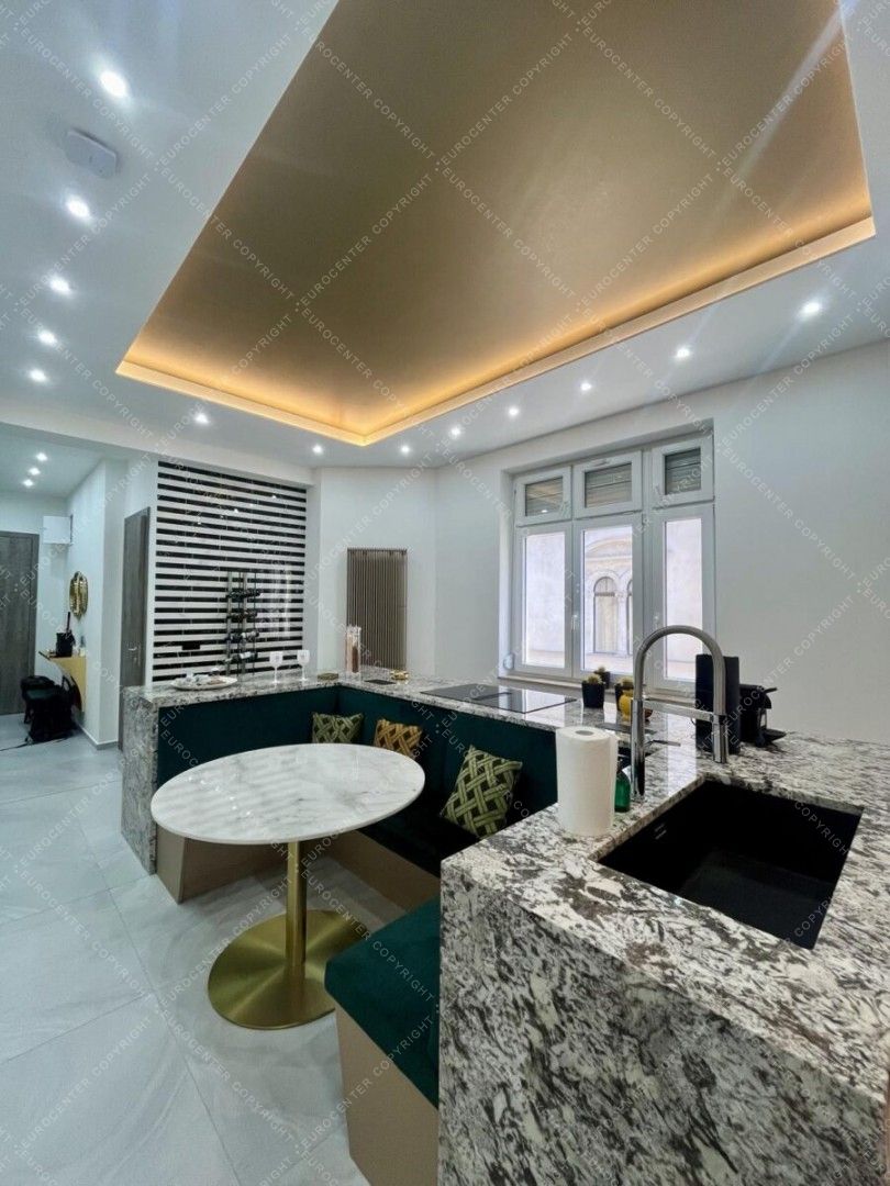 Eladó közvetlenül a Bazilikával szemben egy gyönyörűen kialakított luxuslakás. Teljesen bútorozott és gépesített, eleganciát, kényelmet és modern kényelmi megoldásokat kínál.