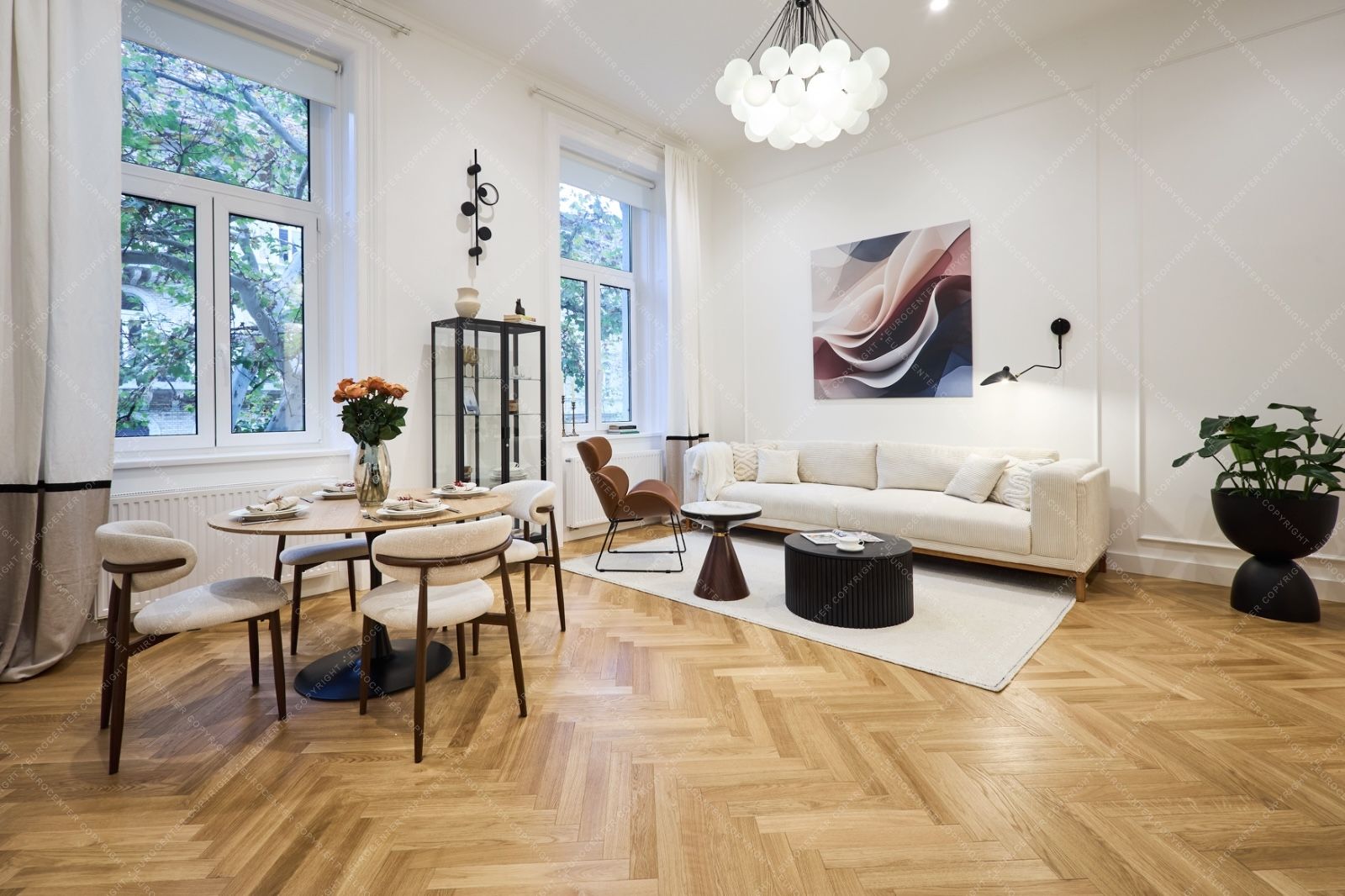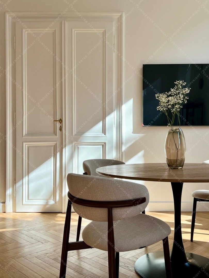 82 m2-es, gyönyörűen felújított lakás eladó Budapest szívében, az 5. és 6. kerület határán, a Podmaniczky utcában. Található benne egy nappali amerikai stílusú konyhával és étkezővel, 2 hálószoba, 2 fürdőszoba és egy vendég wc.