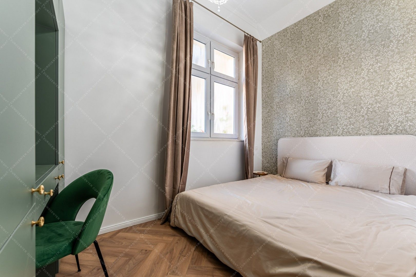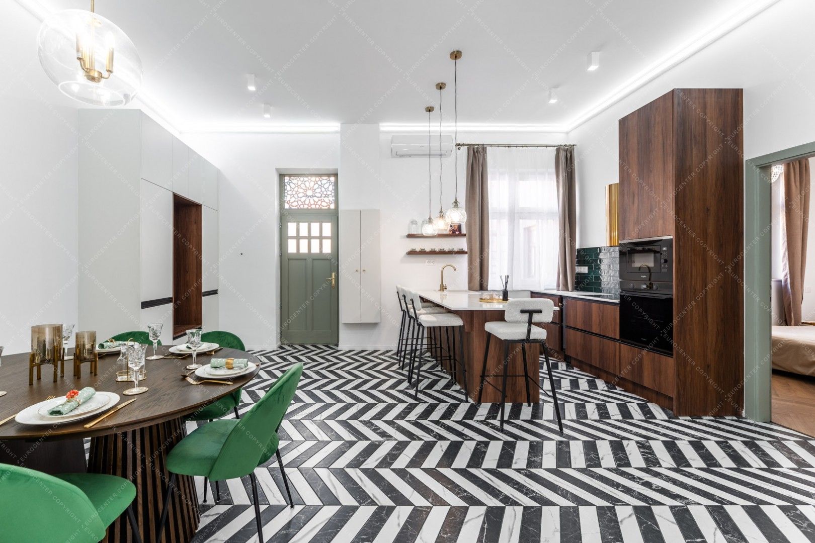A felújítás néhány nappal ezelőtt fejeződött be: a lakás teljesen bútorozott és gépesített, ahol a klasszikus elegancia és a modern design tökéletes harmóniában találkozik.