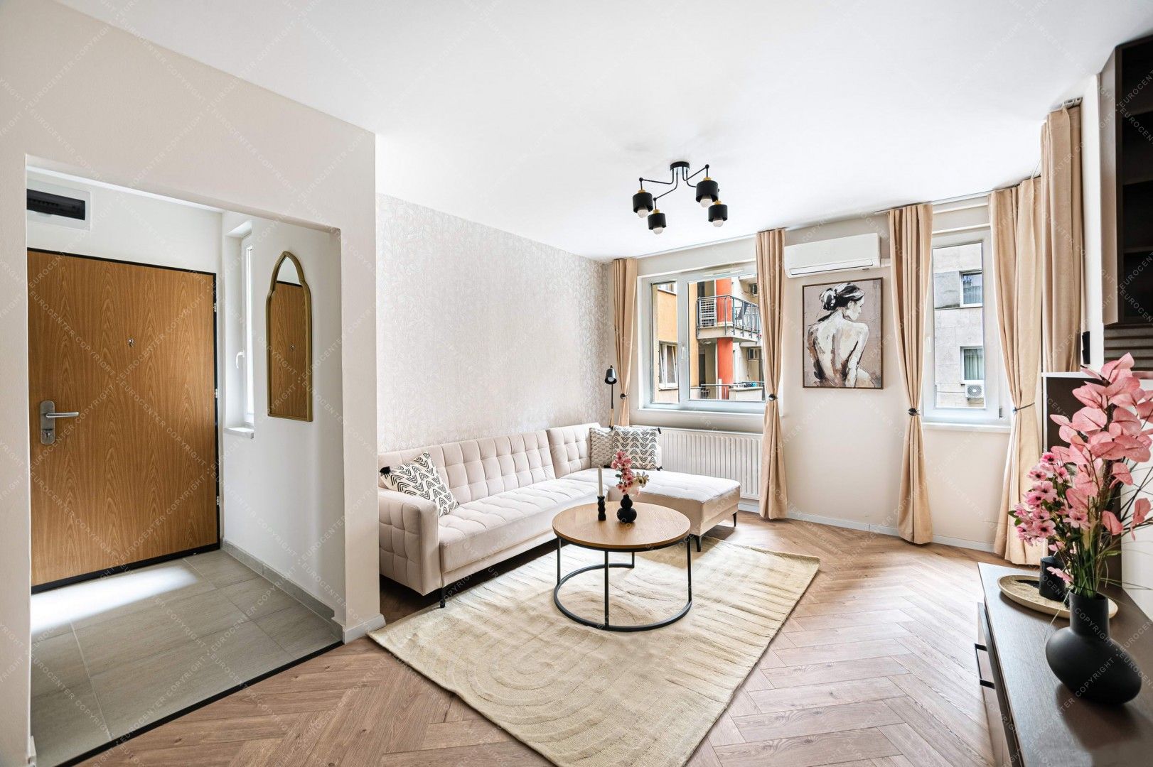 VII. KERÜLET belső Erzsébetvárosban az Akácfa utca 26 szám alatt egy FELÚJÍTOTT, lakberendezők által tervezett, É-D -i fekvésű, amerikai konyhás nappali + 2 szeparált háló résszel, fürdővel, külön wcvel, tárolóval rendelkező 69 m2-es, napfényes, KLÍMÁS, kényelmes lakás plusz 2db kb 4 m2-es ERKÉLLYEL.