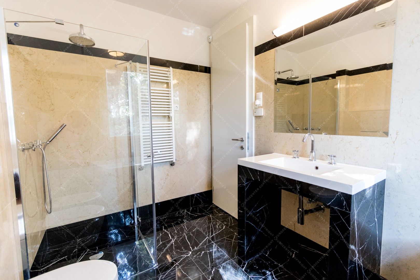 Egy garázshely 2 autó számára szintén hozzátartozik a riasztóval és klímával felszerelt ingatlanhoz. A metró és a buszmegállók pár perc sétával elérhetők.