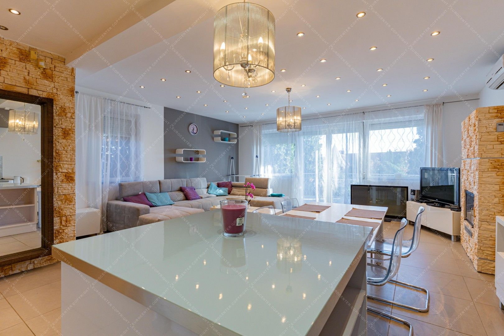Gyönyörű panorámás, két hálószobás, berendezett, klímás luxuslakás kiadó hosszú távra. A lakás teljesen berendezett, medencehasználattal, dolgozószobával, két fürdőszobával, mosókonyhával két tágas hálószobával kiválóan alkalmas egy nyugodt és kellemes környezetben a feltöltődésre, pihenésre. A közös költség 30.000 Ft/hó. 1 férőhelyes garázs, valamint 1 férőhelyes parkolás az udvarban ingyenes!!