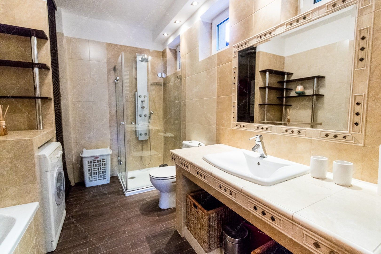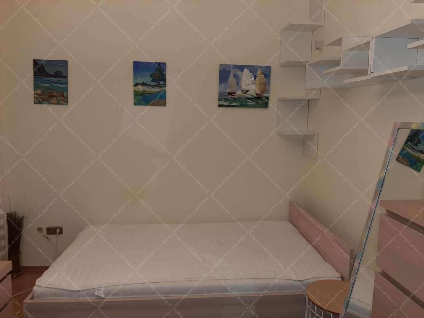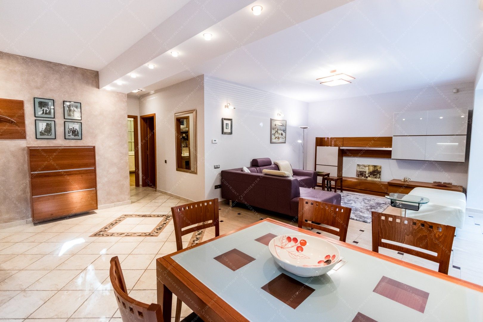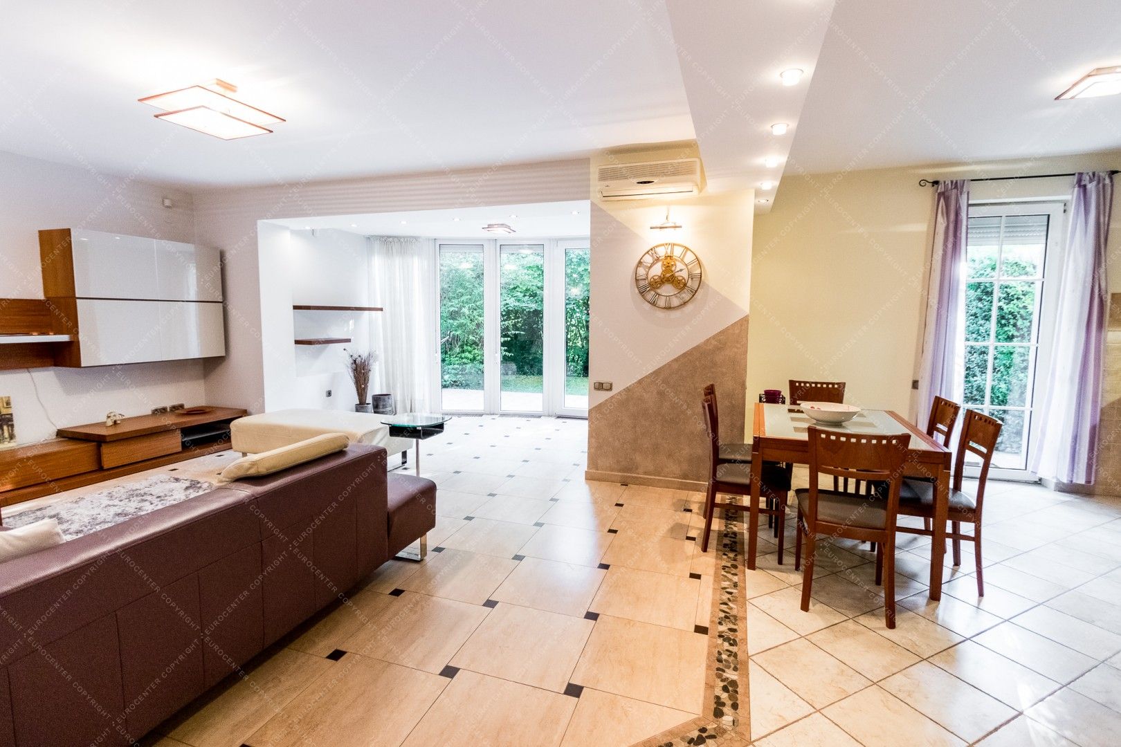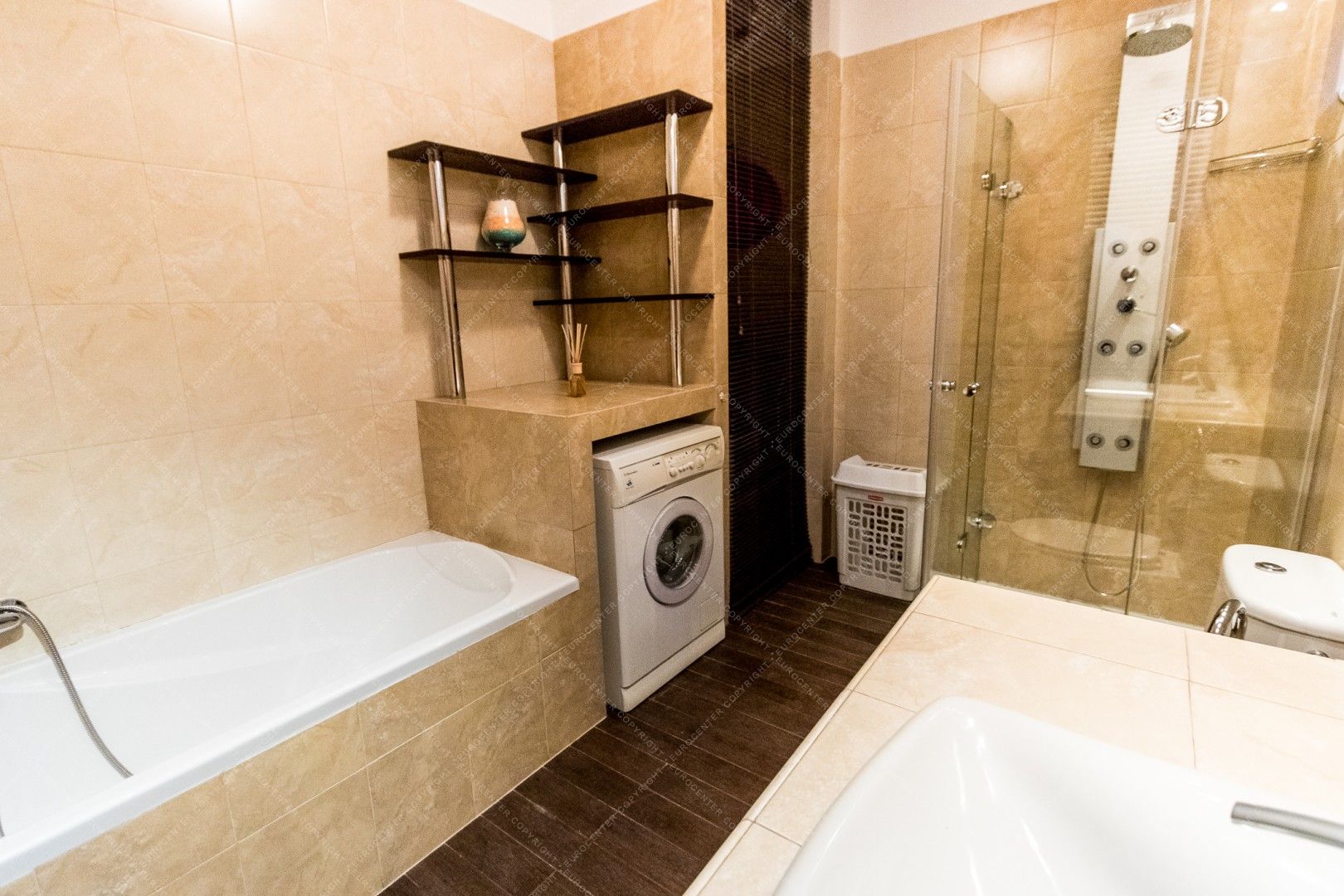 Igényesen bútorozott, földszinti lakás kiadó egy 10 lakásos társasházban a Rózsadombon. Található benne 2 hálószoba, egy nappali, egy fürdőszoba, egy mellékhelyiség, egy gardróbszoba és egy felszerelt, amerikai stílusú konyha. Egy 30 m2-es terasz, egy garázs és egy privát kertrész szintén tartozik a légkondicionált és riasztóberendezéssel ellátott ingatlanhoz.