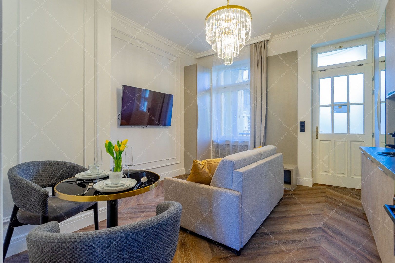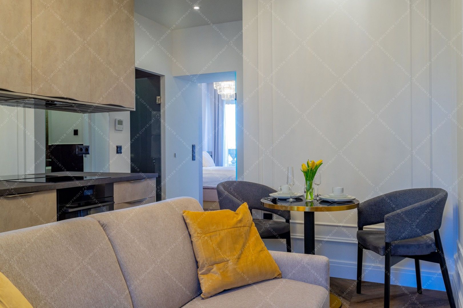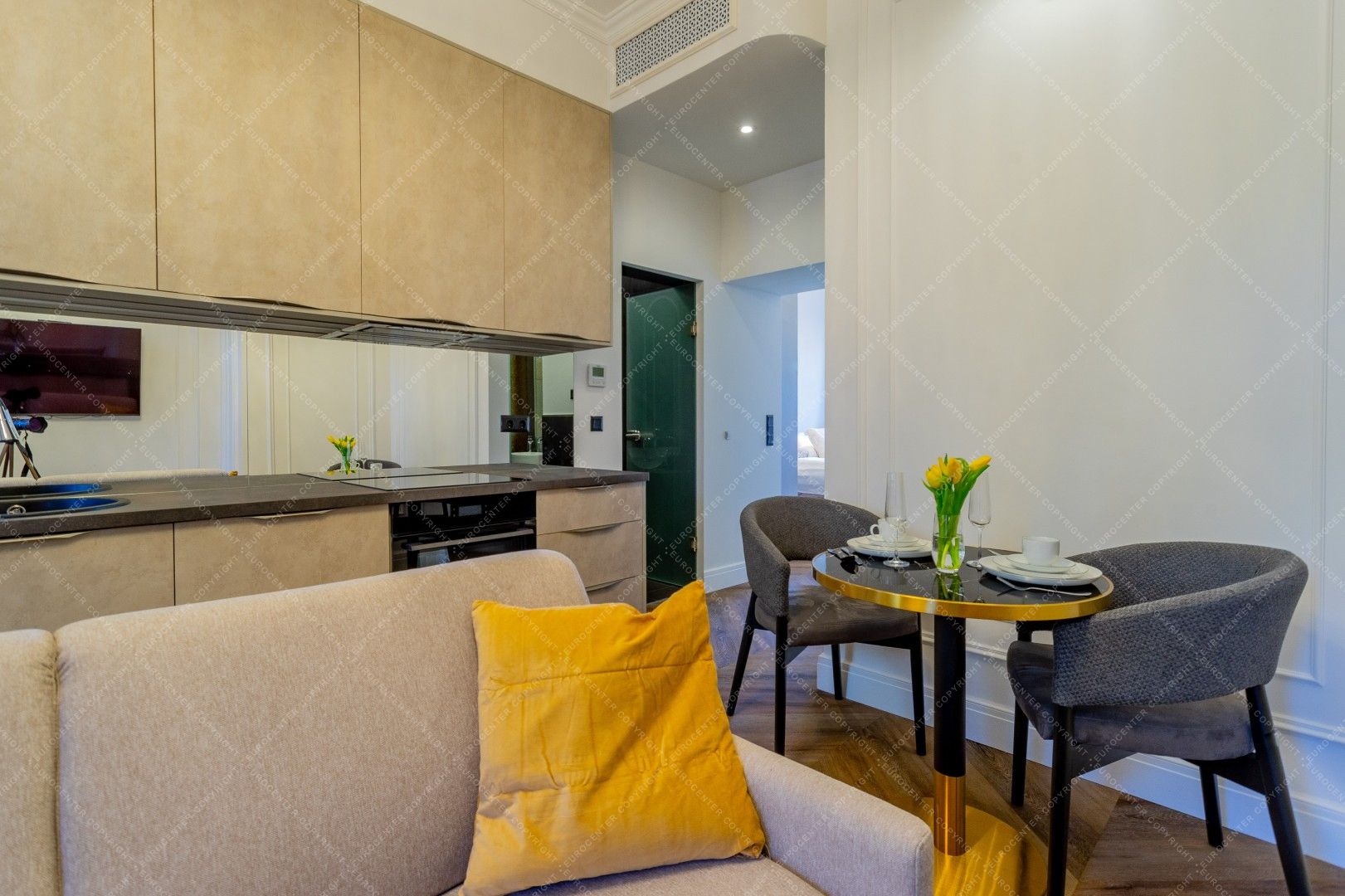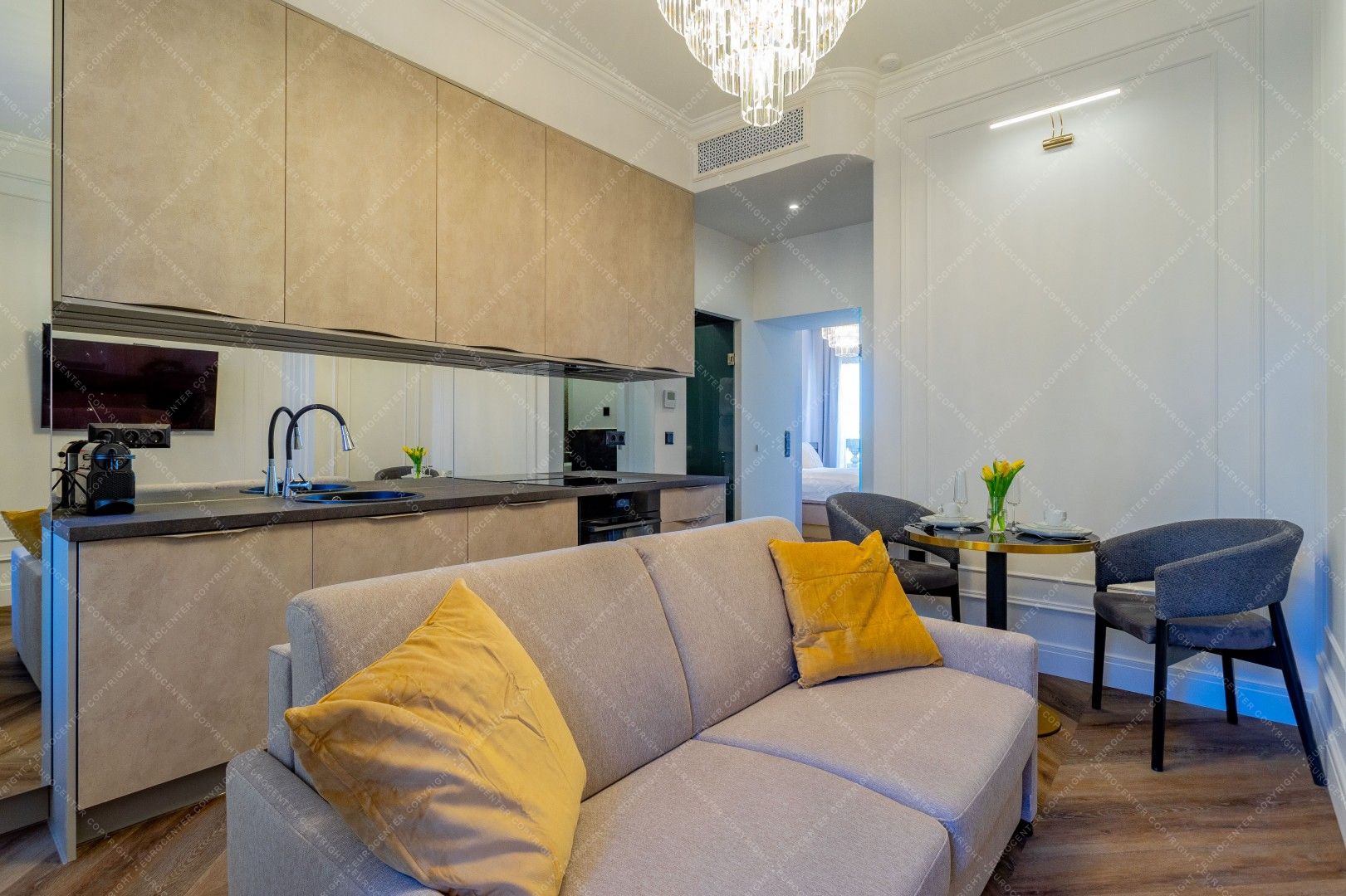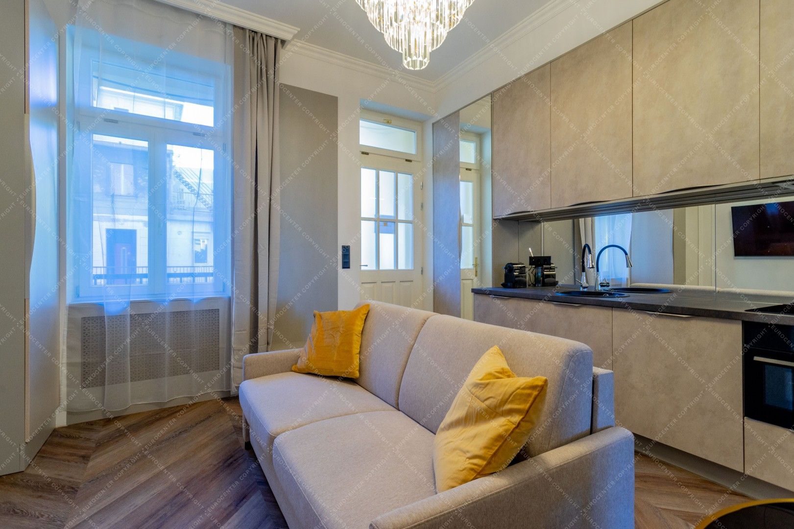 Kiadó Budapest egyik legexkluzívabb részén, a Vértanúk terén, egy 5. emeleti, 38 m²-es, frissen és korszerűen felújított lakás, panorámás kilátással a térre és erkéllyel.