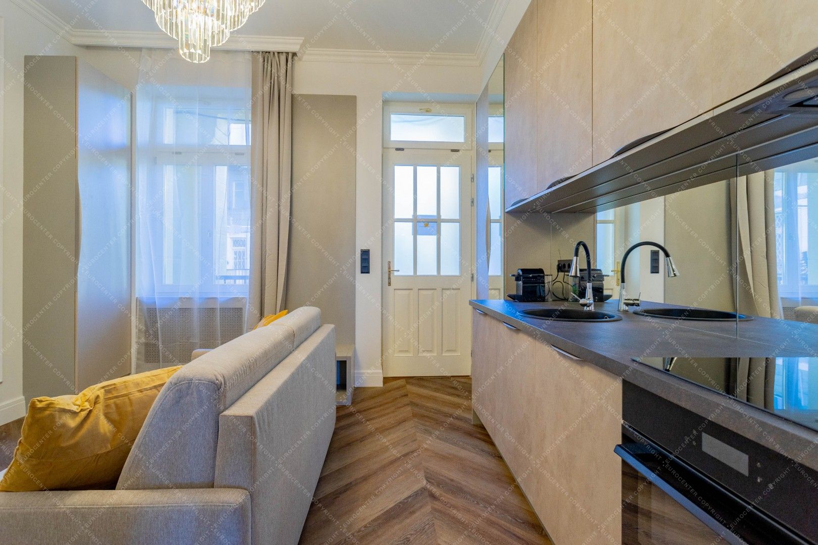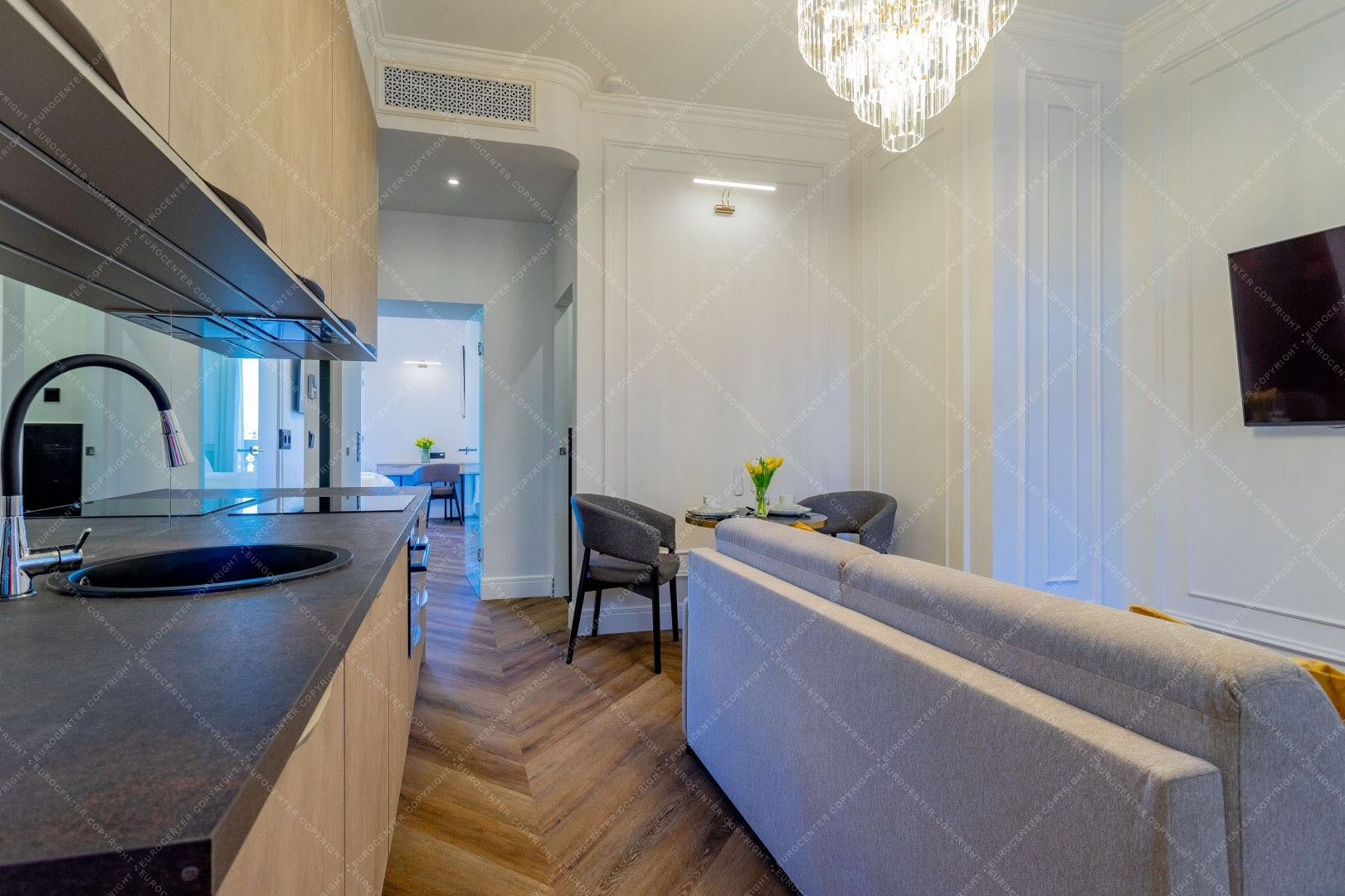 A felújítás során minőségi alapanyagok kerültek felhasználásra, a lakás igényes, modern életteret kínál.