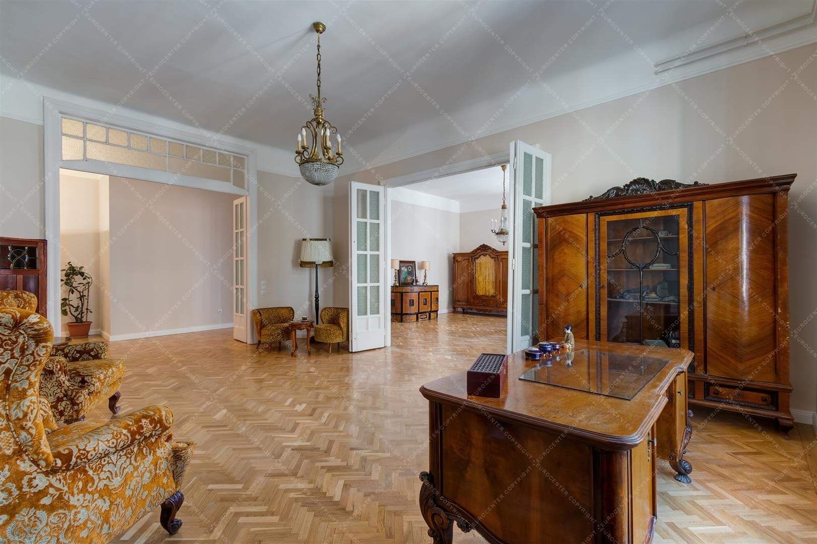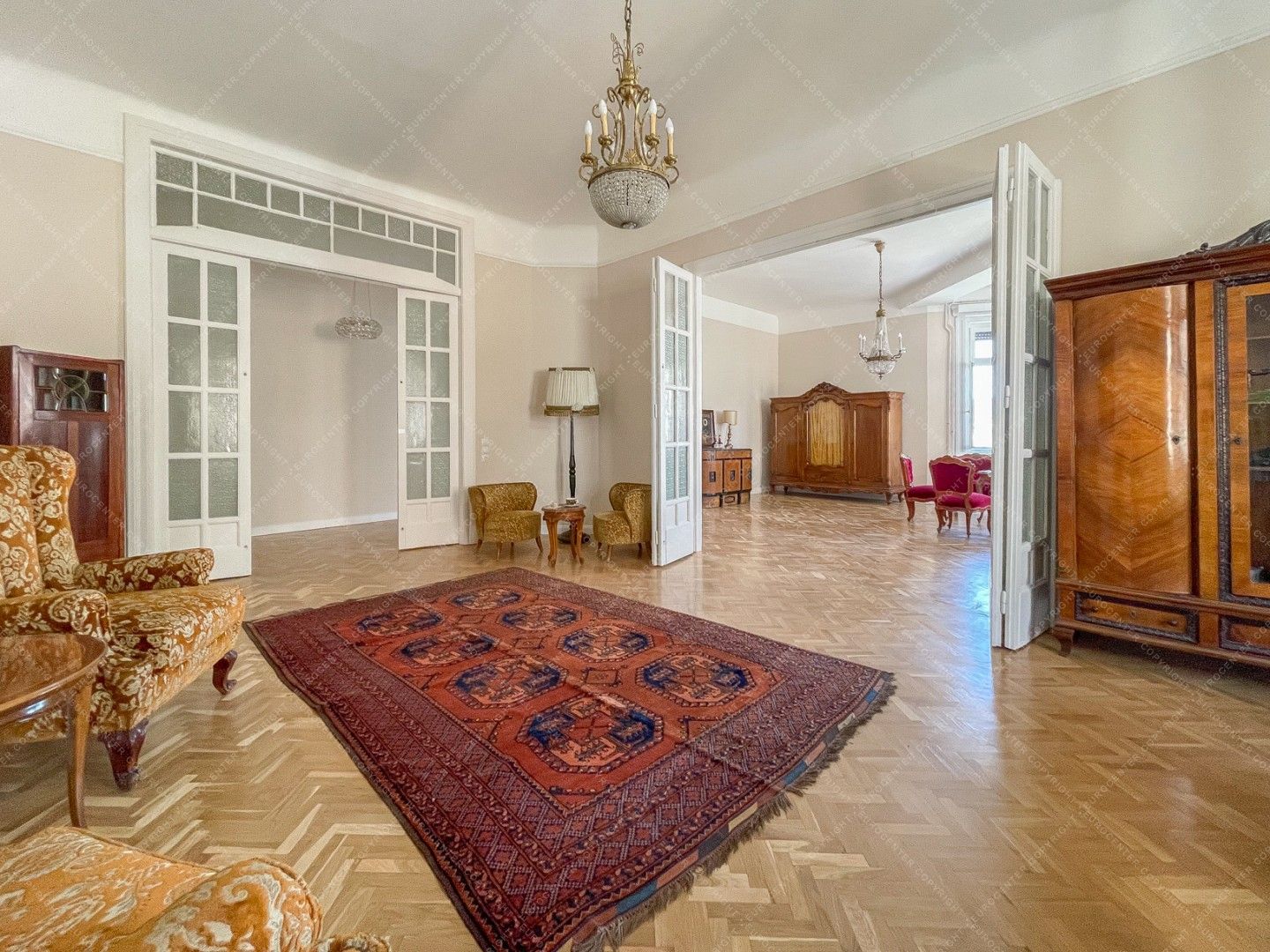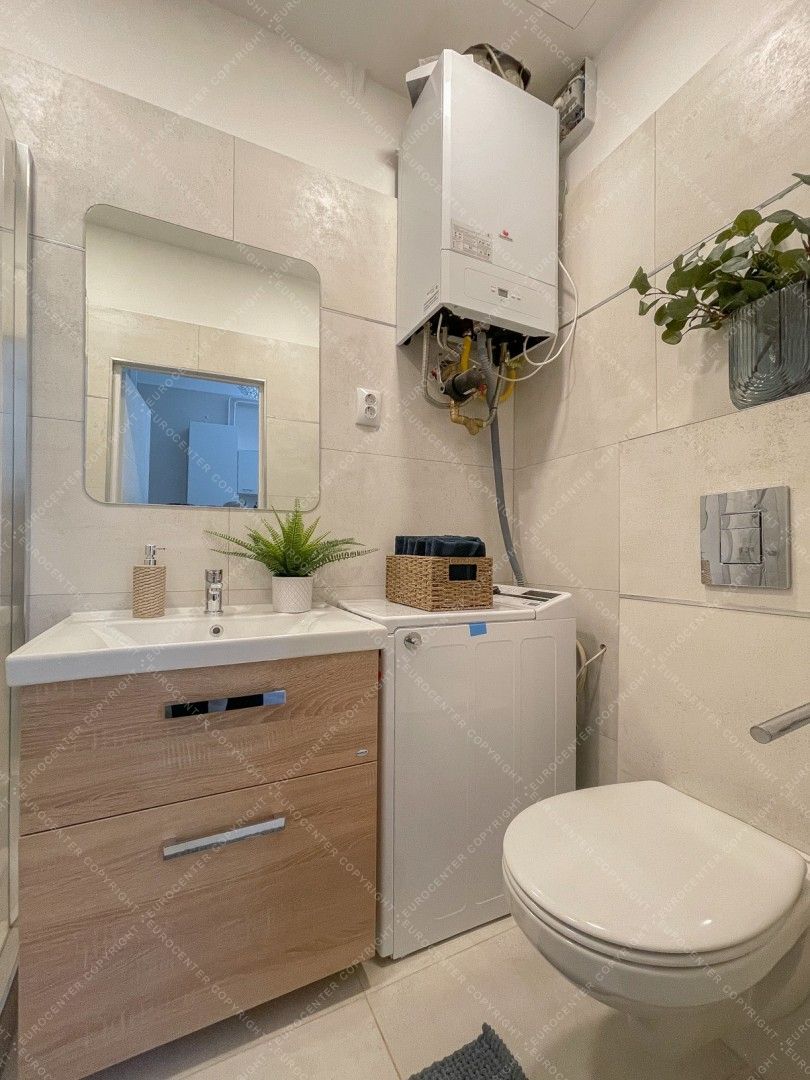 A lakásban két nagy méretű szoba található, amik egybe is és külön is nyílnak. Emellett külön fürdőszoba, külön WC és külön konyha került még kialakításra.