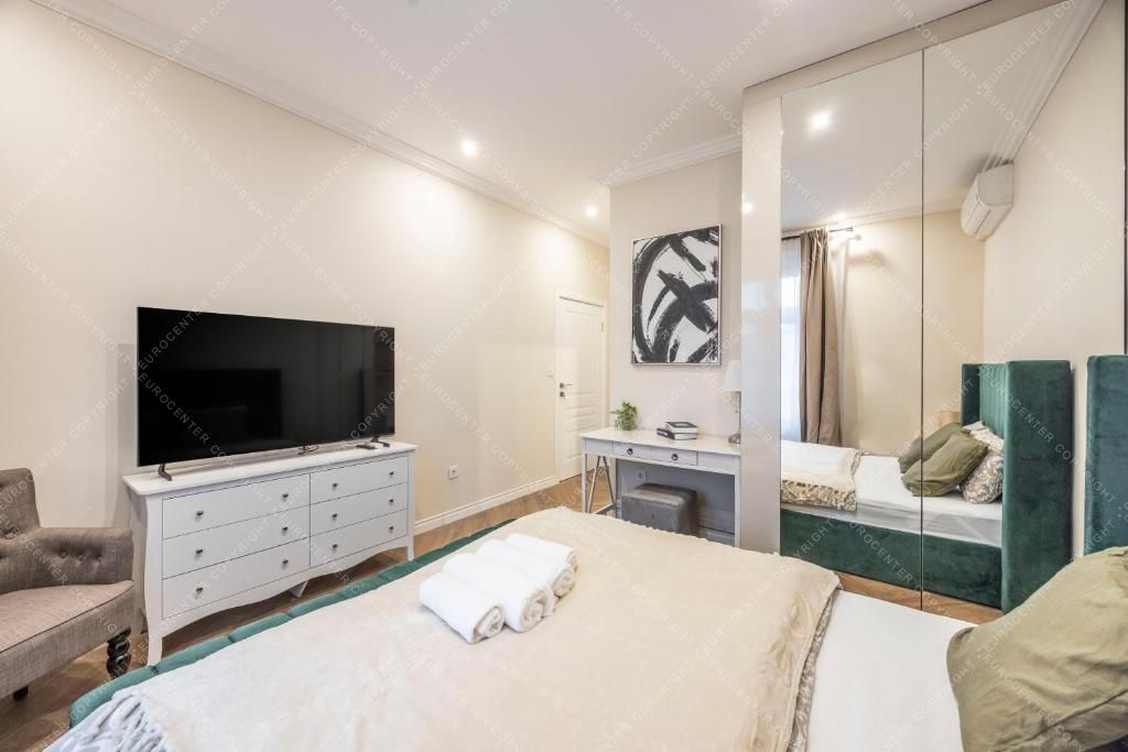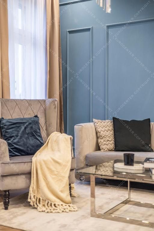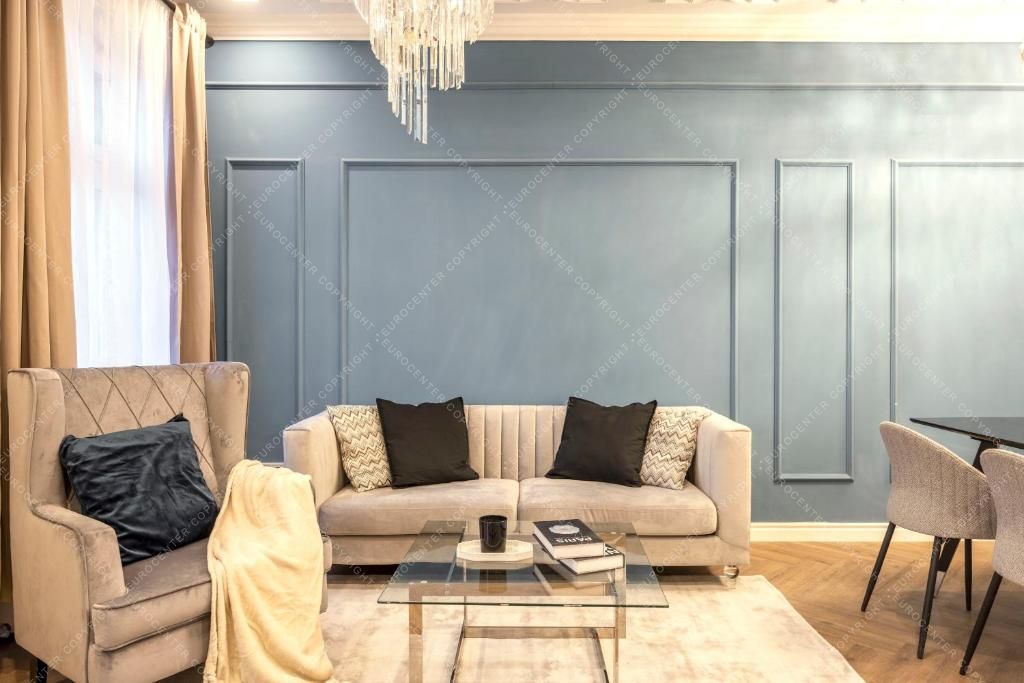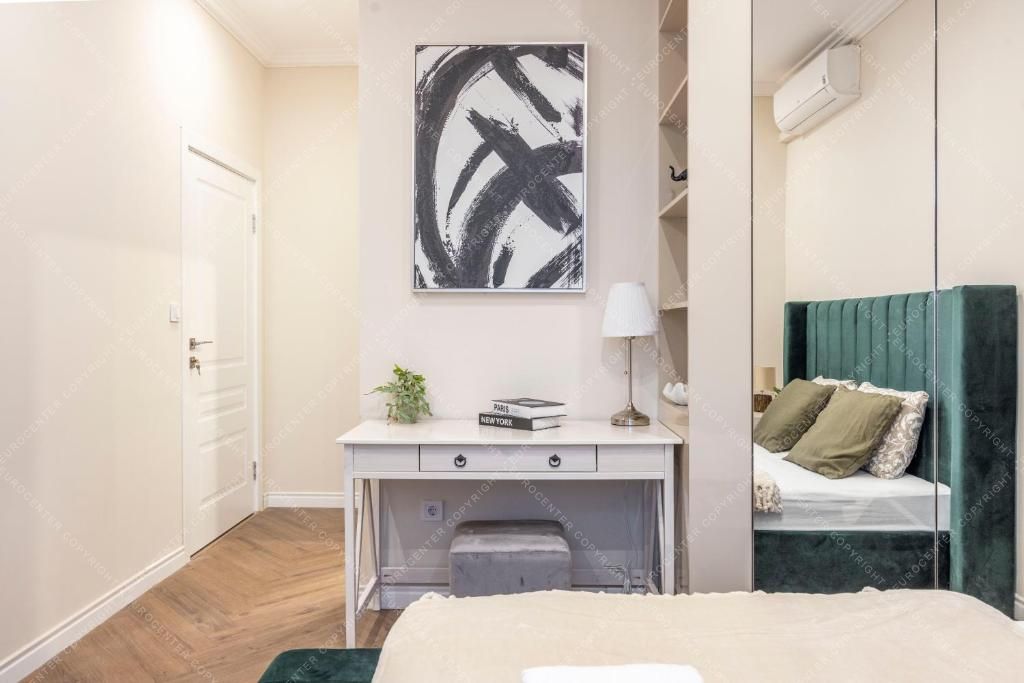 A lakás kiváló elhelyezkedésű, a belváros szívében, tömegközlekedési kapcsolatok, üzletek, éttermek és kávézók pár perc sétára találhatók.