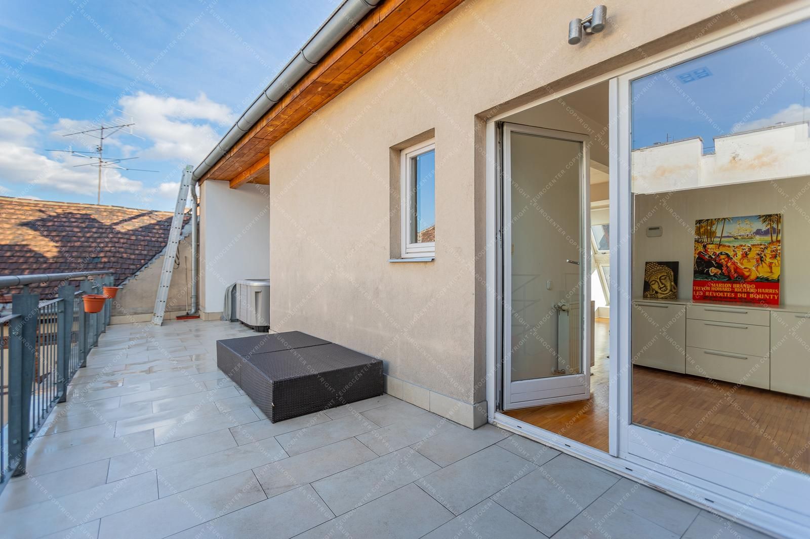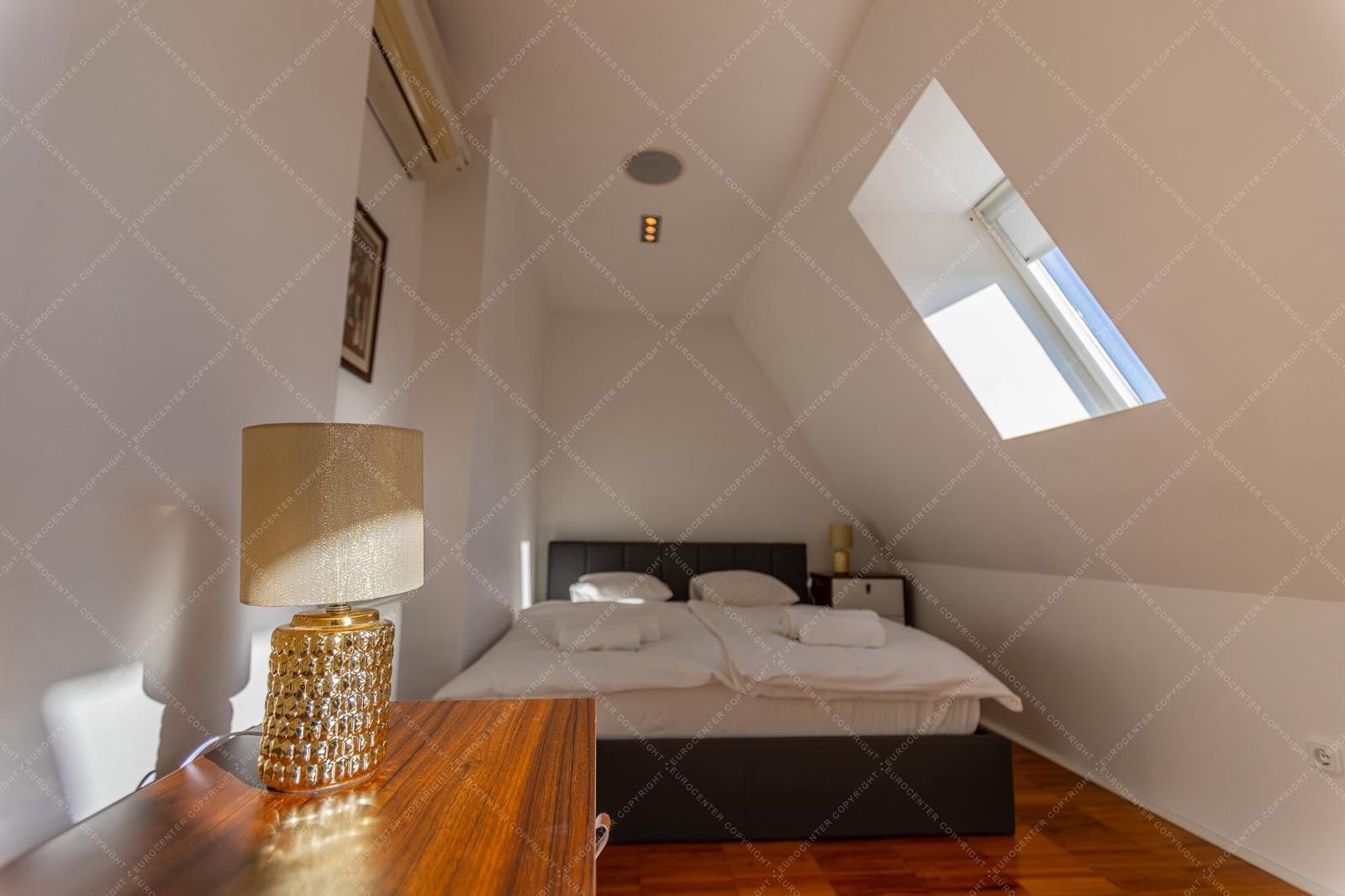 Üdvözöljük ebben a rendkívüli, új építésű duplex penthouse- lakásban. Kiváló elhelyezkedésével egy 1880-as építésű Teréz körúti, szépen díszletelt házban, ablakai kilátást nyújtanak a Király utcára. A lakás 133 m2, egy 32 m2 terasszal. Amerikai konyhás, két hálószobával és egy kültéri jacuzzival a teraszon. Minimalista stílusú konyhája LG HI-MACS pulttal van felszerelve. A nappali 5, 6 méteres változó belmagasságú, hatalmas ablakokkal. A fő hálószoba hotelszerűen van kialakítva, egybenyitva a fürdőszobával. Fa padlóval, légkondicionálóval, riasztóberendezéssel és beépített audio- rendszerrel (8 pár hangszóróval a plafonban) van felszerelve. A szomszédban egy garázs hely jár a lakáshoz. A terasz kiválóan alkalmas társasági életre, vagy lazításra a jacuzziban. Közvetlen közelségében található az Oktogon, a Liszt Ferenc tér, az Andrássy út é tömegközlekedés. Szomszédságában sok népszerű étterem található. Internet, kábel-TV, telefonvonal, takarító és mosodai szolgáltatások elérhetőek plusz költség fejében. A lakás bútorral vagy bútor nélkül egyaránt bérelhető.