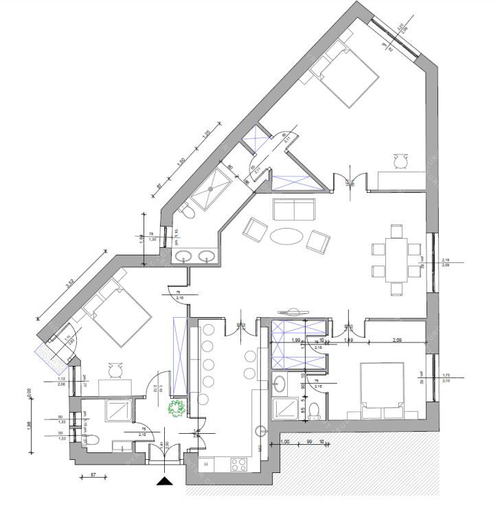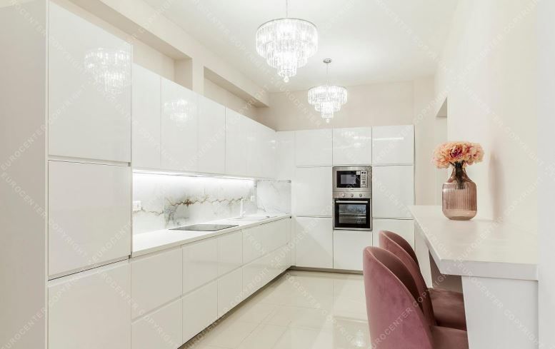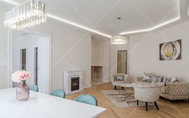 A lakásban található 3 hálószoba, egy nappali étkezővel, egy felszerelt és gépesített konyha, 3 fürdőszoba. A lakásban riasztó és légkondicionáló van.