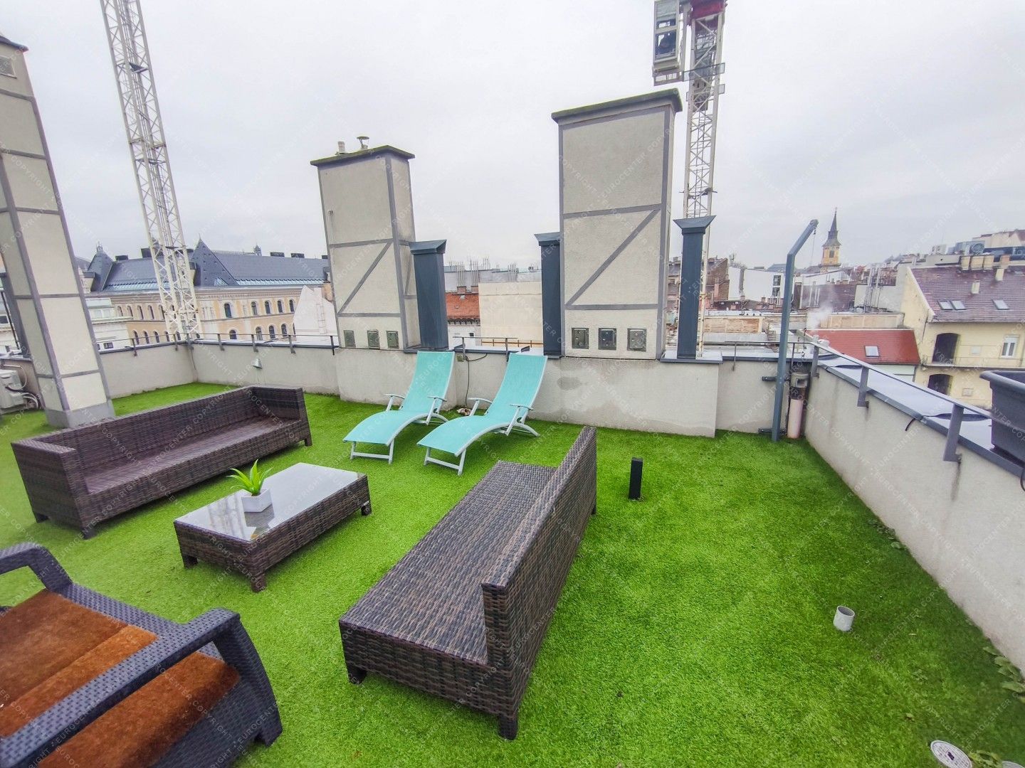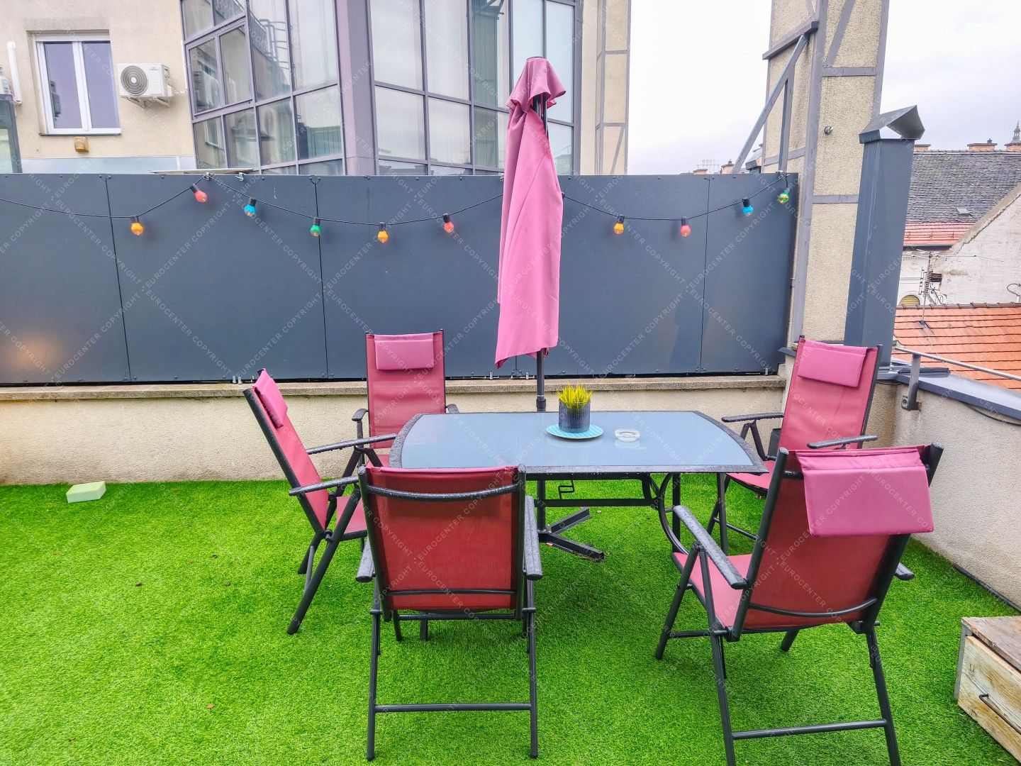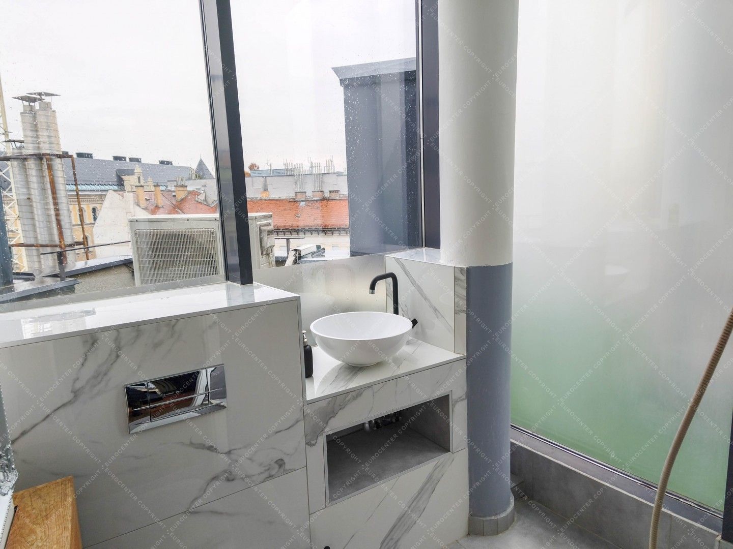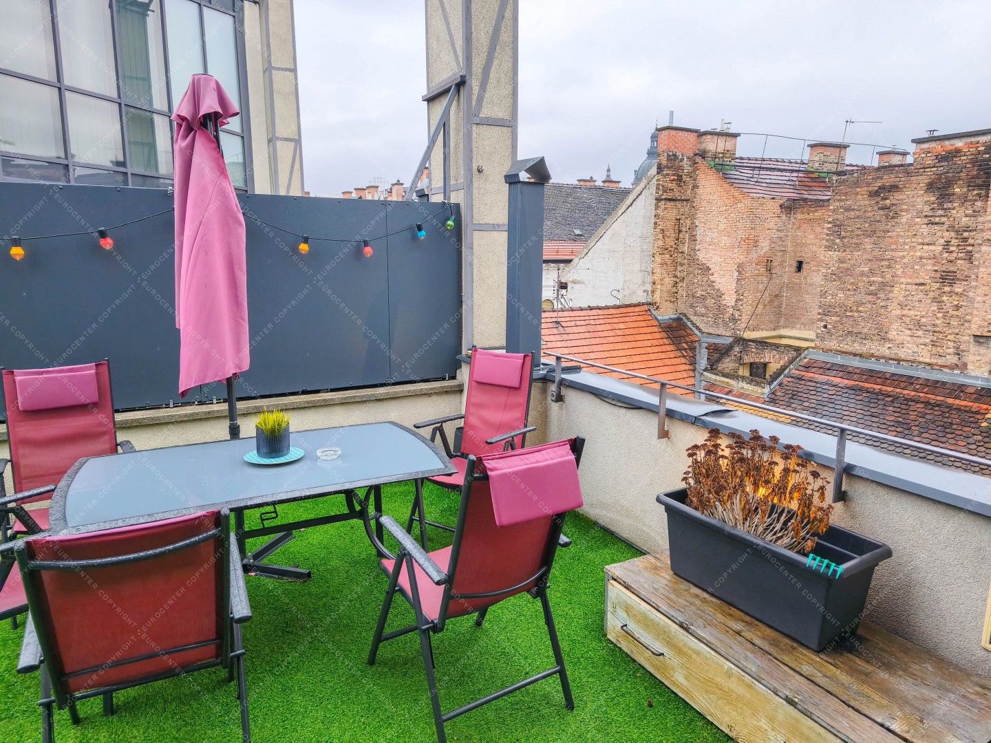 Kiadó egy 140 m²-es duplex lakás panorámás tetőterasszal, liftes házban, szintráépítésben kialakítva.